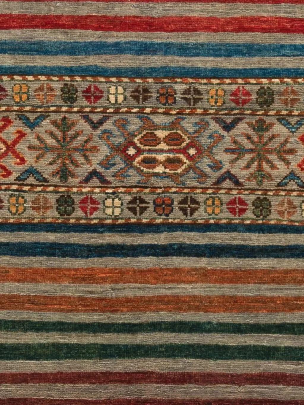 Schal sind farbenfrohe Orientteppiche mit Streifen in vielen verschiedenen Variationen. Einige Teppiche sind längs gestreift und andere quer. Vorbild für diese abwechslungsreichen Streifen ist das persischeMoharamati