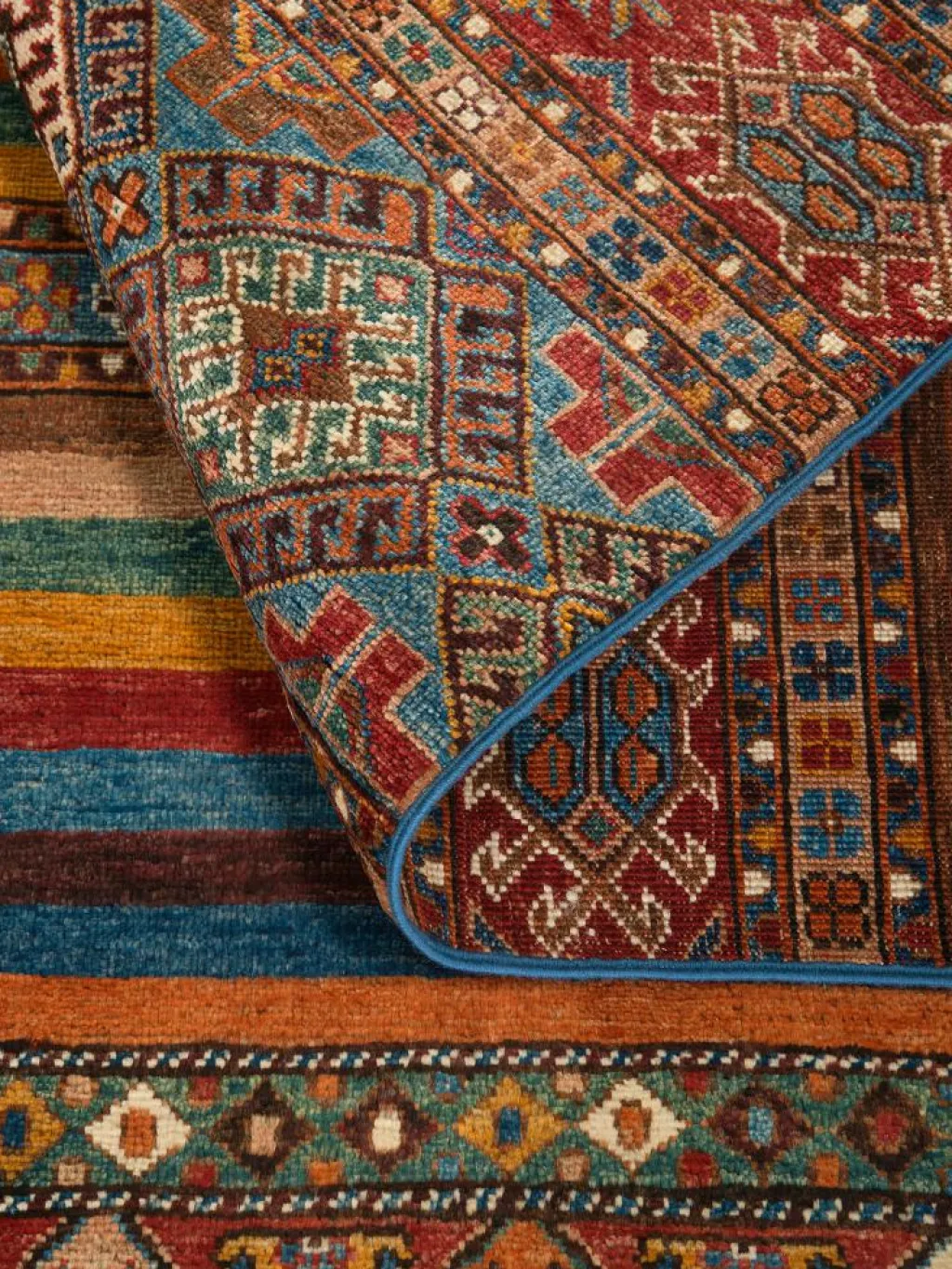 Schal sind farbenfrohe Orientteppiche mit Streifen in vielen verschiedenen Variationen. Einige Teppiche sind längs gestreift und andere quer. Vorbild für diese abwechslungsreichen Streifen ist das persischeMoharamati