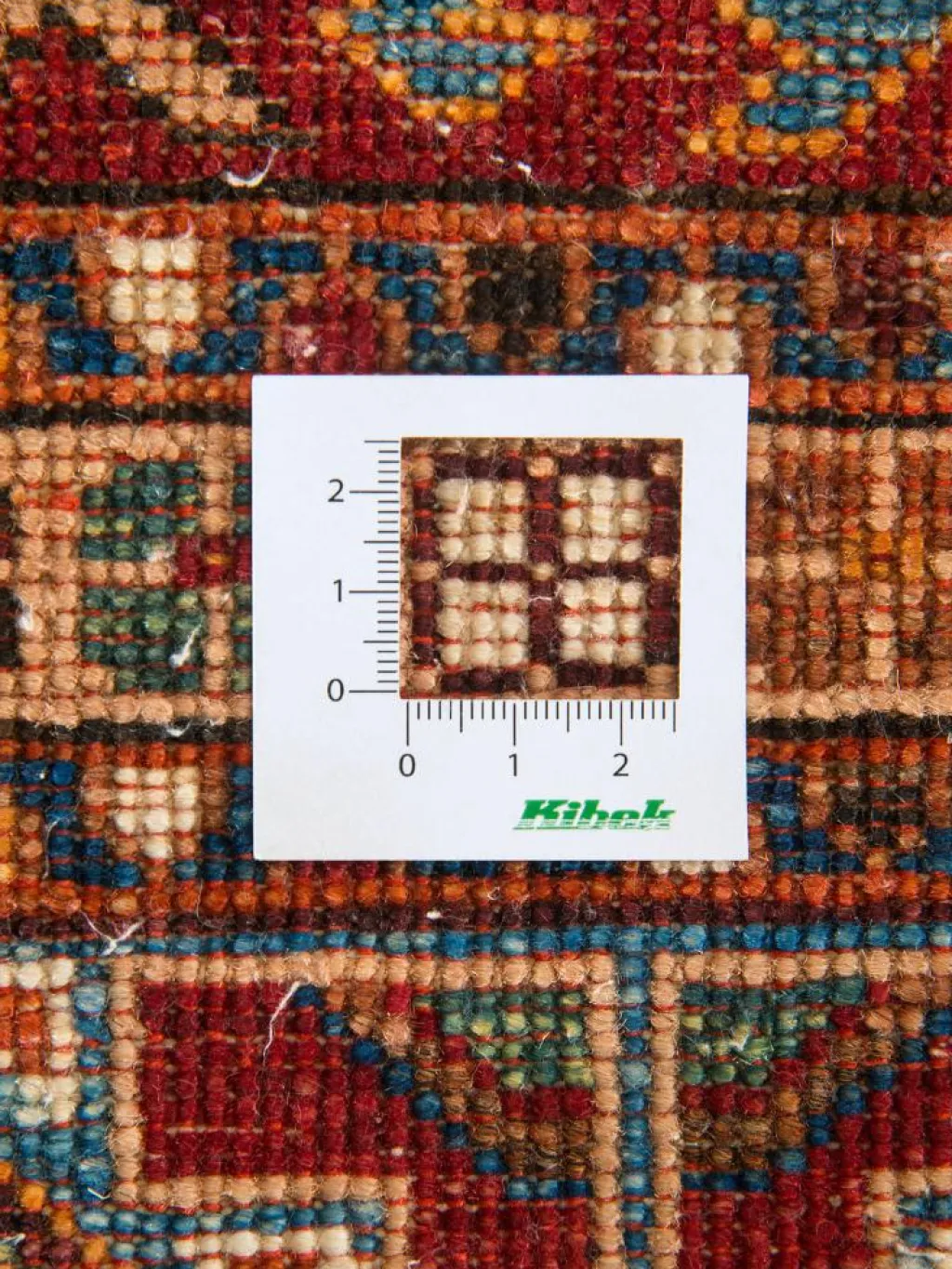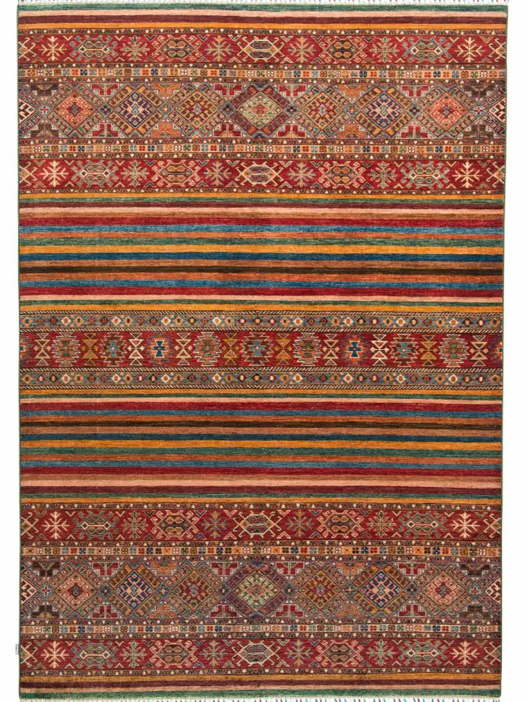 -Muster sind bunte Längsstreifen mit vielen verschiedenen Motiven gefüllt. Durch den flachen und festen Flor ist der Teppich unempfindlich gegenüber den Belastungen des Alltags.- Das Besondere an diesemOrientteppich