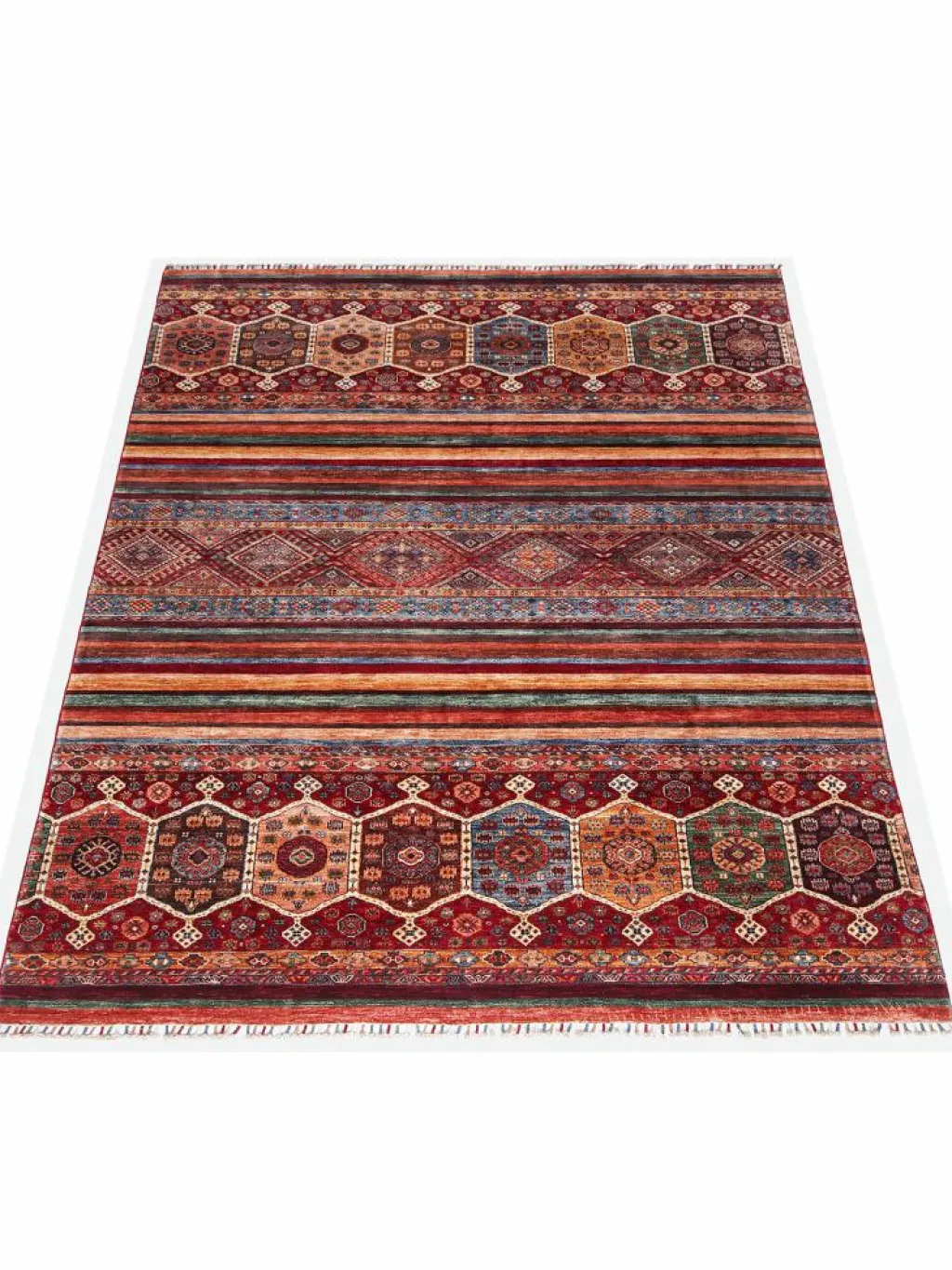 Schal sind farbenfrohe Orientteppiche mit Streifen in vielen verschiedenen Variationen. Einige Teppiche sind längs gestreift und andere quer. Vorbild für diese abwechslungsreichen Streifen ist das persischeMoharamati