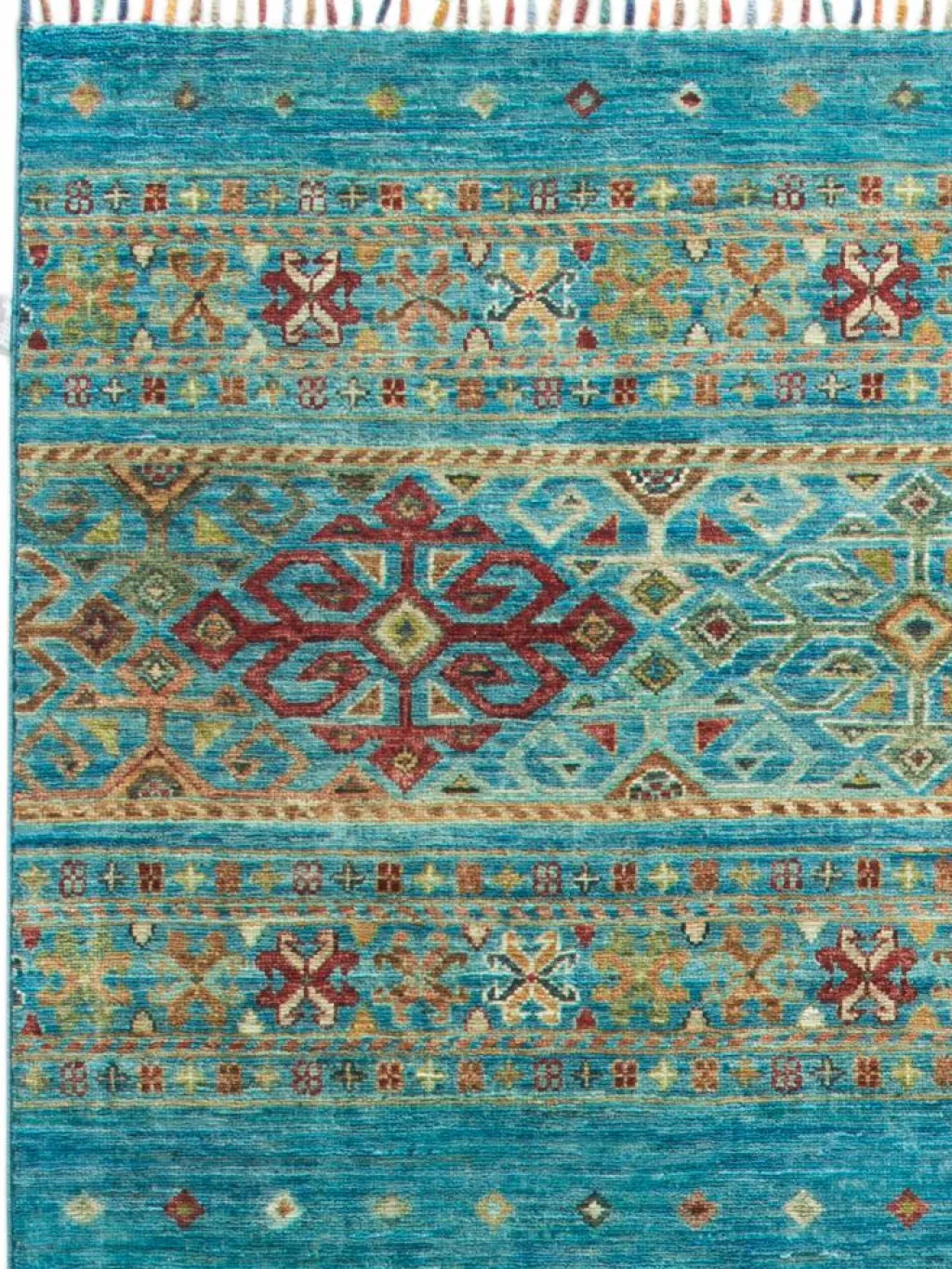 -Muster sind bunte Längsstreifen mit vielen verschiedenen Motiven gefüllt. Oft sind dieFransen