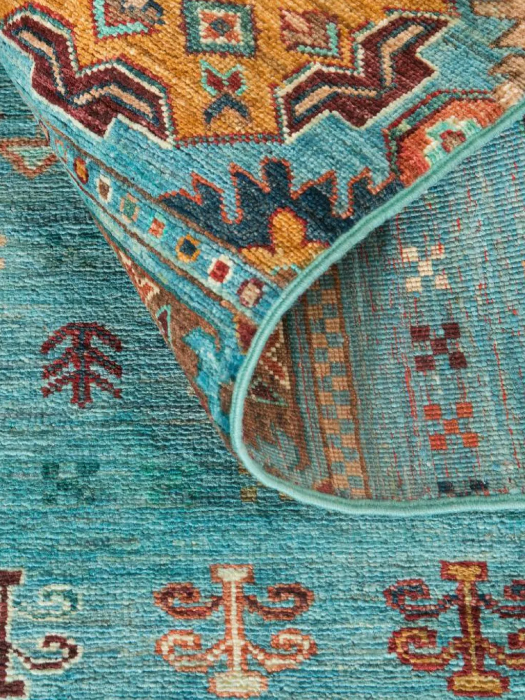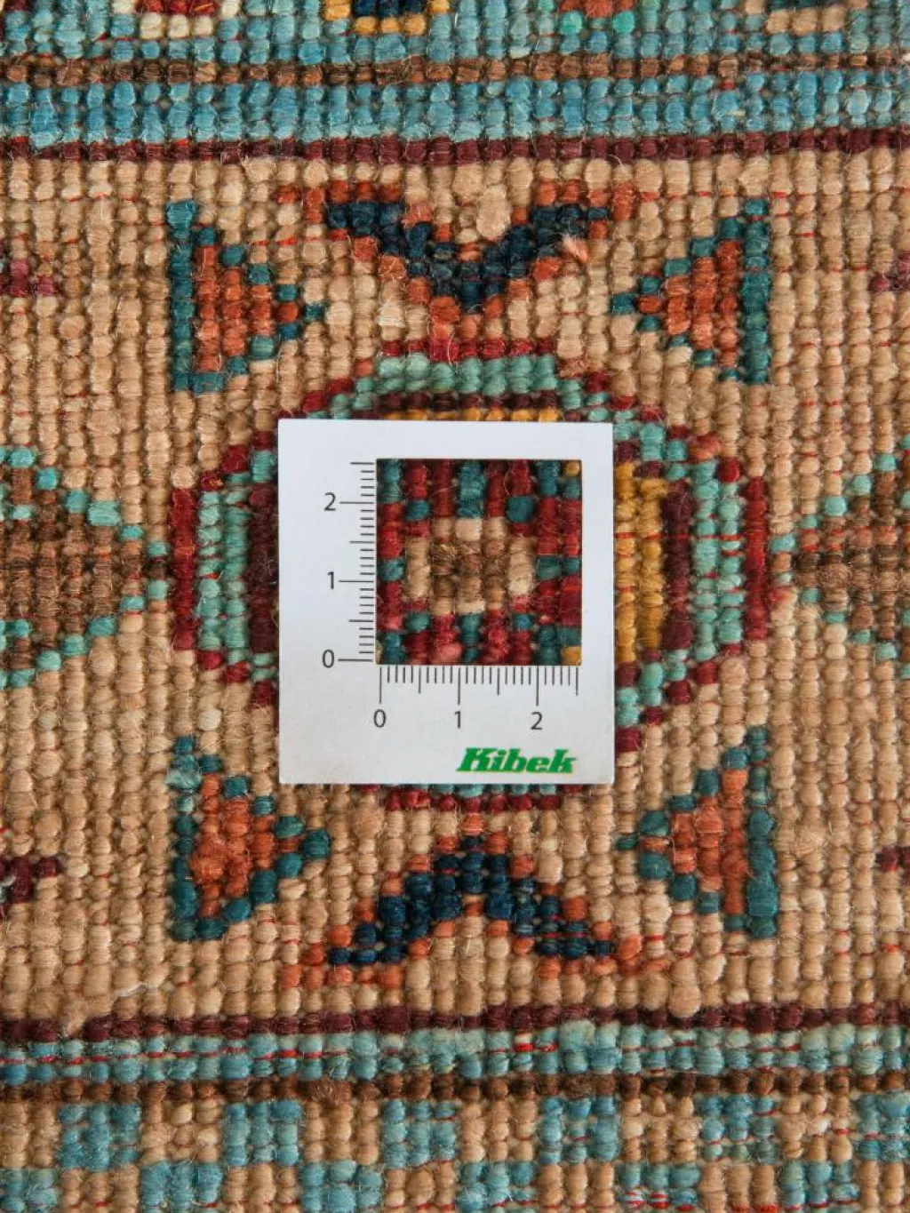 mit bunten Fäden zusammen gebunden. Durch den flachen und festen Flor ist der Teppich unempfindlich gegenüber den Belastungen des Alltags.| Gesamthöhe: | ca. 6 mm |
