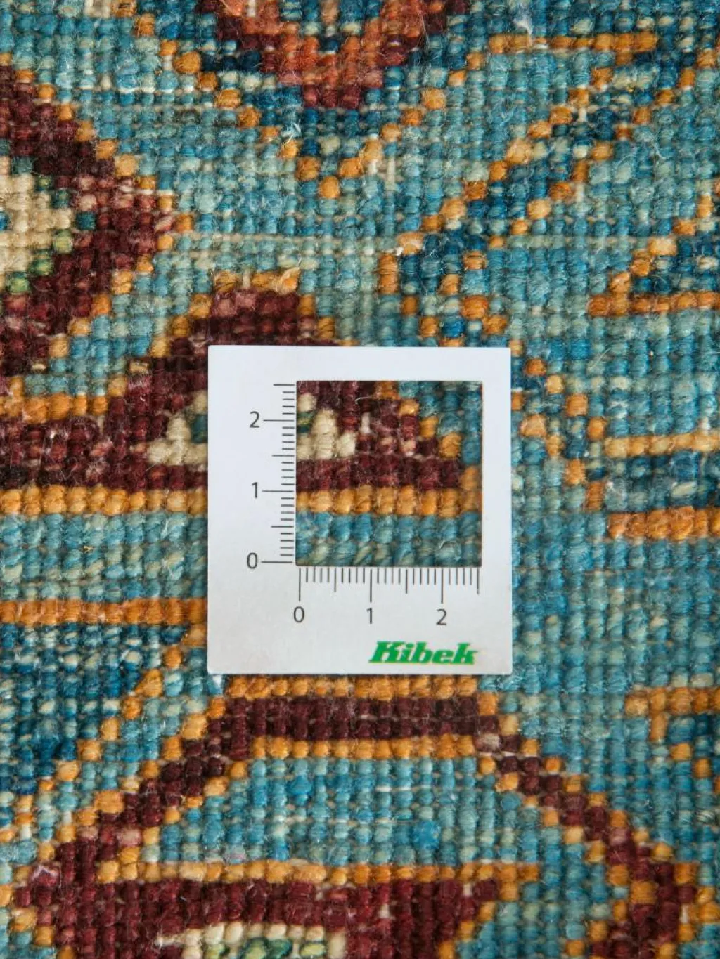 mit bunten Fäden zusammen gebunden. Durch den flachen und festen Flor ist der Teppich unempfindlich gegenüber den Belastungen des Alltags.| Gesamthöhe: | ca. 6 mm |