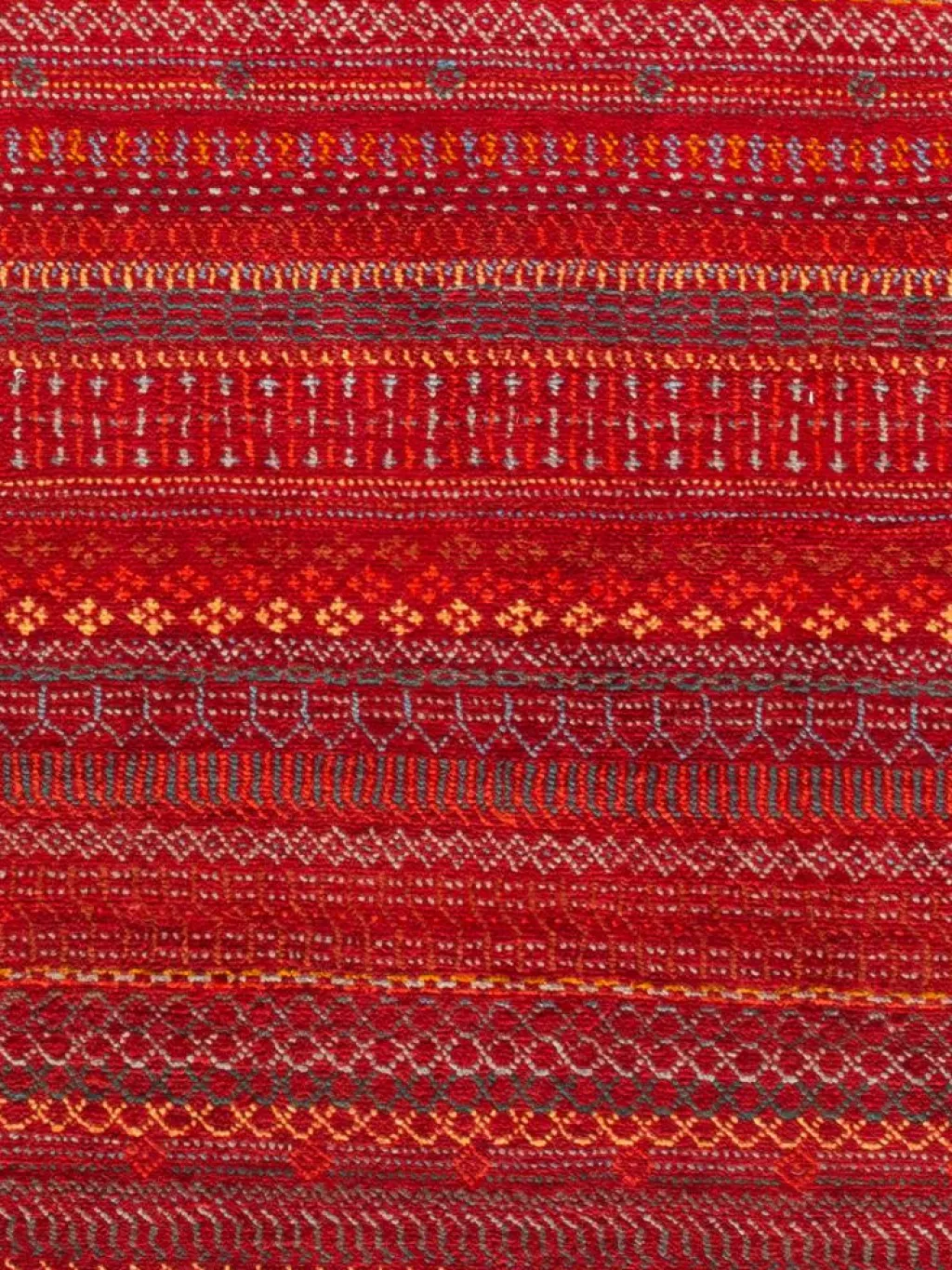 ist eine ungewöhnliche moderne Variation des traditionellen persichen Gabbehs. Er ist kürzer im Flor und feiner geknüpft. Es gibt zahllose Neukreationen in individuellen und einzigartigen Farben und Mustern.| Gesamthöhe: | ca. 10 mm |
