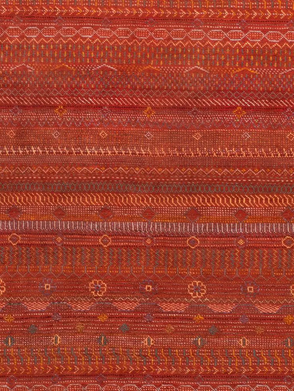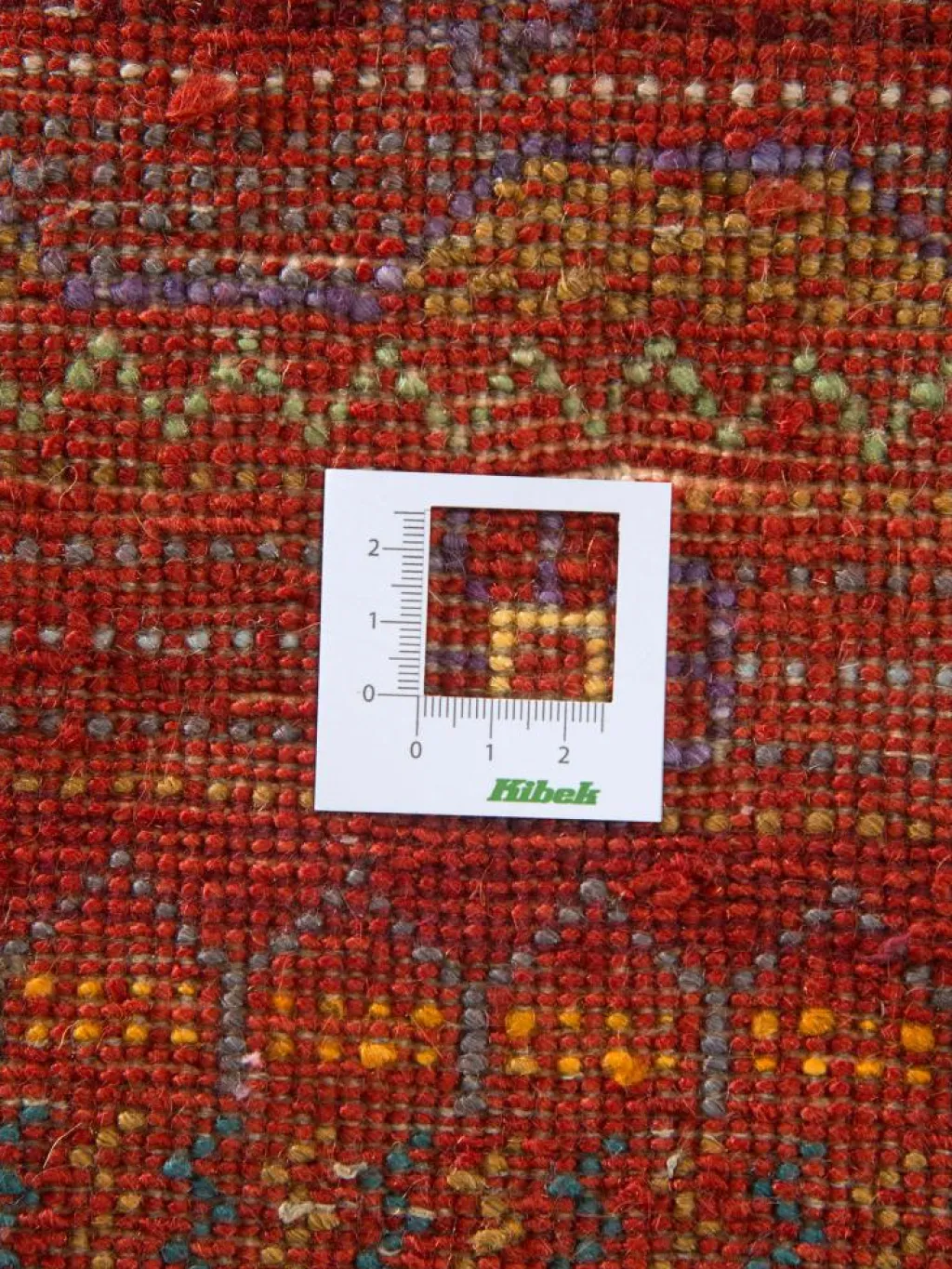 ist eine ungewöhnliche moderne Variation des traditionellen persichen Gabbehs. Er ist kürzer im Flor und feiner geknüpft. Es gibt zahllose Neukreationen in individuellen und einzigartigen Farben und Mustern.| Gesamthöhe: | ca. 10 mm |