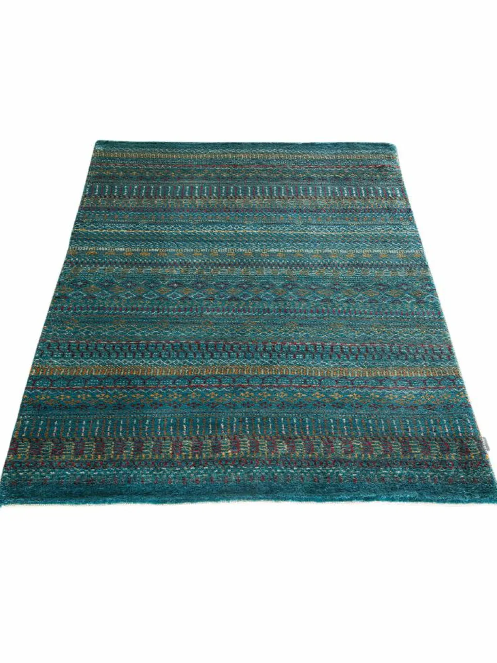 ist eine ungewöhnliche moderne Variation des traditionellen persichen Gabbehs. Er ist kürzer im Flor und feiner geknüpft. Es gibt zahllose Neukreationen in individuellen und einzigartigen Farben und Mustern.| Gesamthöhe: | ca. 10 mm |