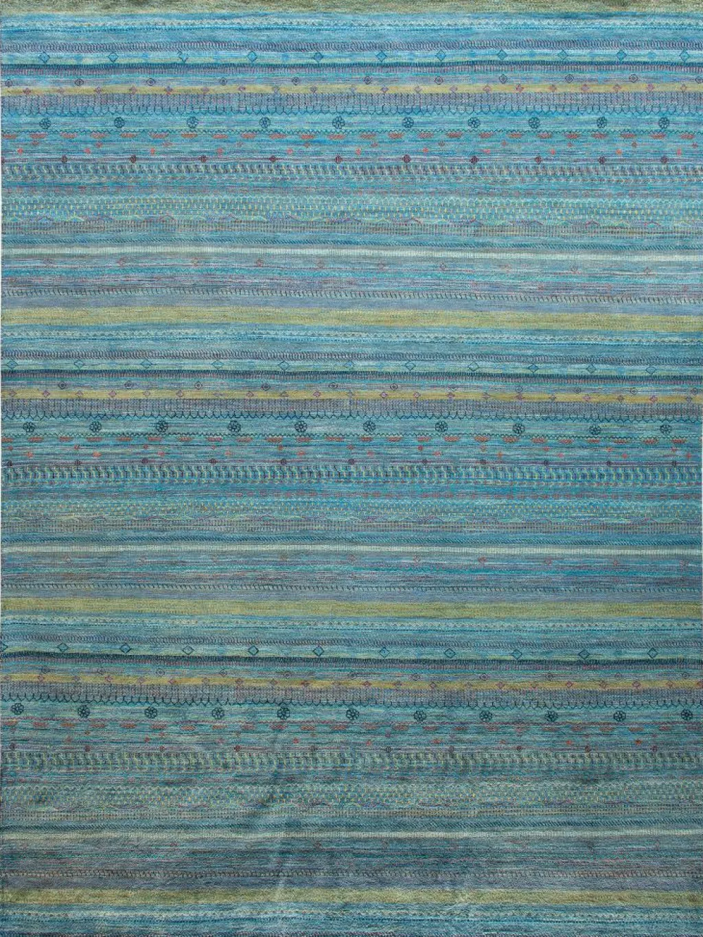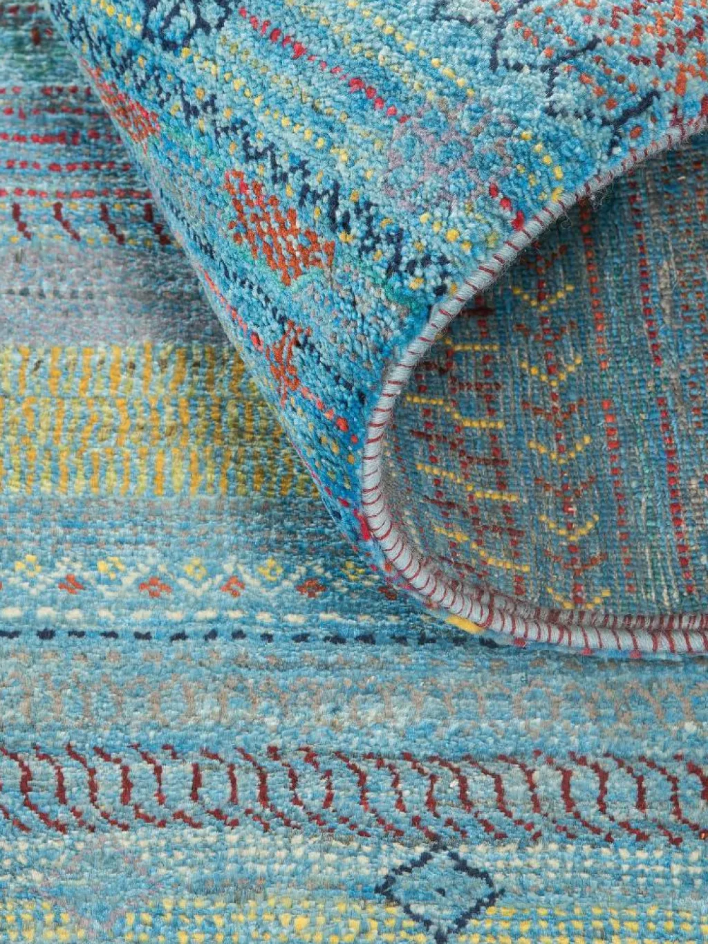 ist eine ungewöhnliche moderne Variation des traditionellen persichen Gabbehs. Er ist kürzer im Flor und feiner geknüpft. Es gibt zahllose Neukreationen in individuellen und einzigartigen Farben und Mustern.| Gesamthöhe: | ca. 10 mm |