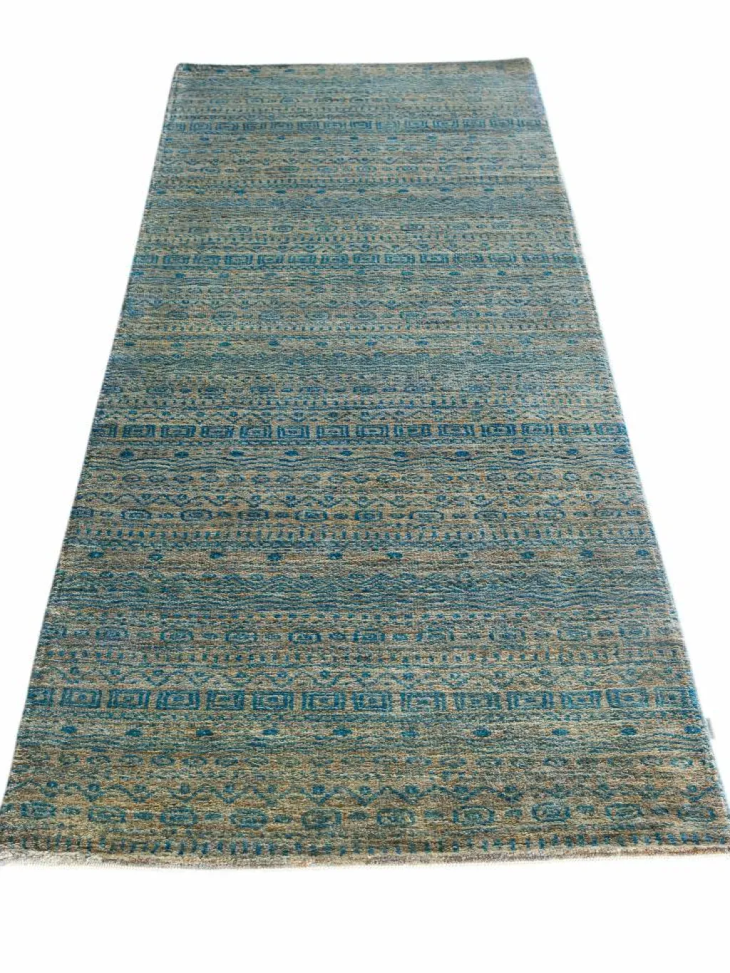 ist eine ungewöhnliche moderne Variation des traditionellen persichen Gabbehs. Er ist kürzer im Flor und feiner geknüpft. Es gibt zahllose Neukreationen in individuellen und einzigartigen Farben und Mustern.| Gesamthöhe: | ca. 10 mm |