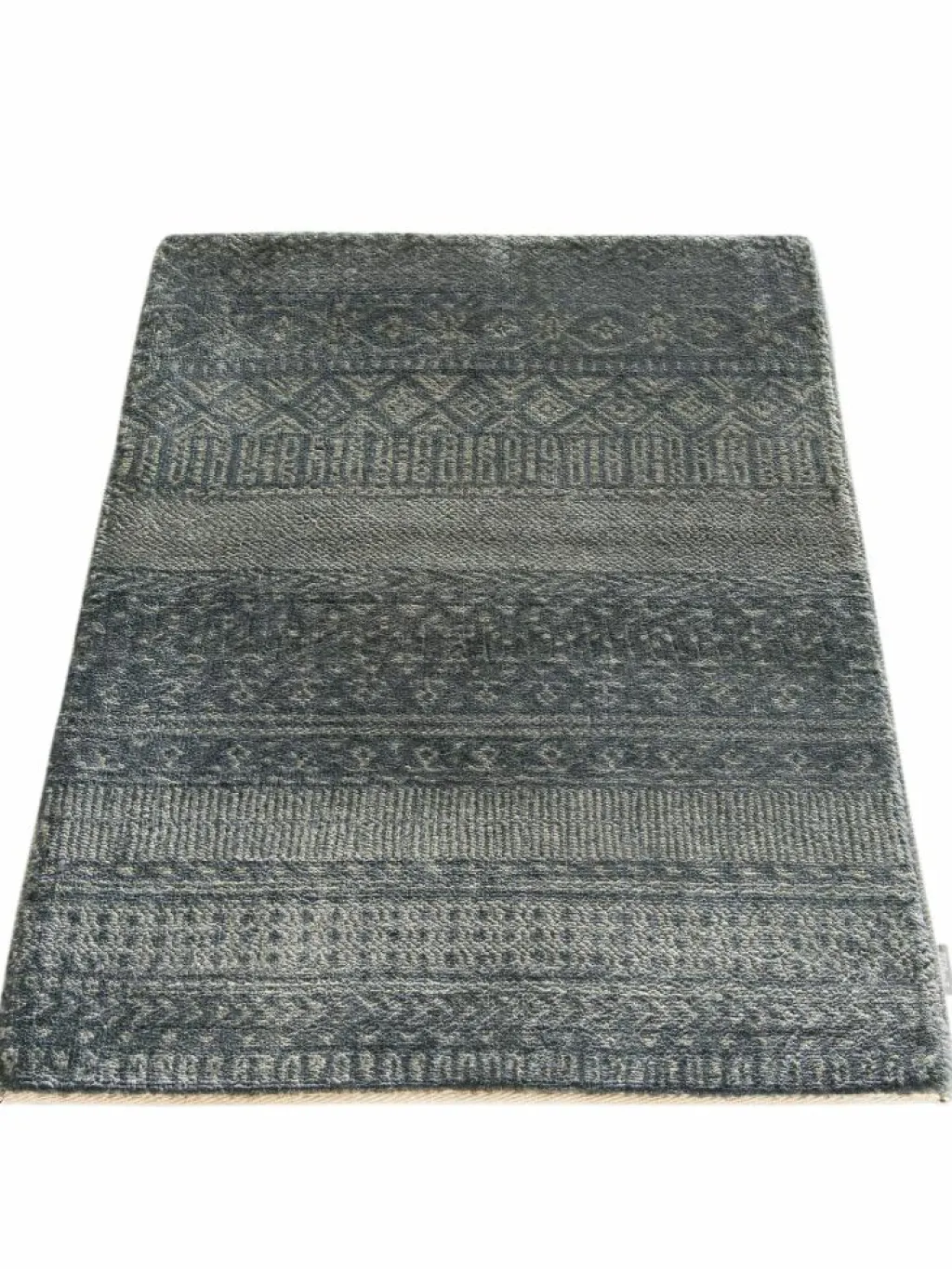 ist eine ungewöhnliche moderne Variation des traditionellen persichen Gabbehs. Er ist kürzer im Flor und feiner geknüpft. Es gibt zahllose Neukreationen in individuellen und einzigartigen Farben und Mustern.| Gesamthöhe: | ca. 9 mm |