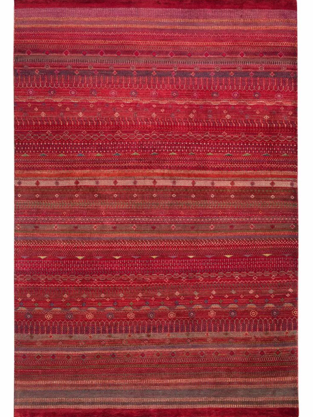 ist eine ungewöhnliche moderne Variation des traditionellen persichen Gabbehs. Er ist kürzer im Flor und feiner geknüpft. Es gibt zahllose Neukreationen in individuellen und einzigartigen Farben und Mustern. – Fein geknüpft inDouble-Knot