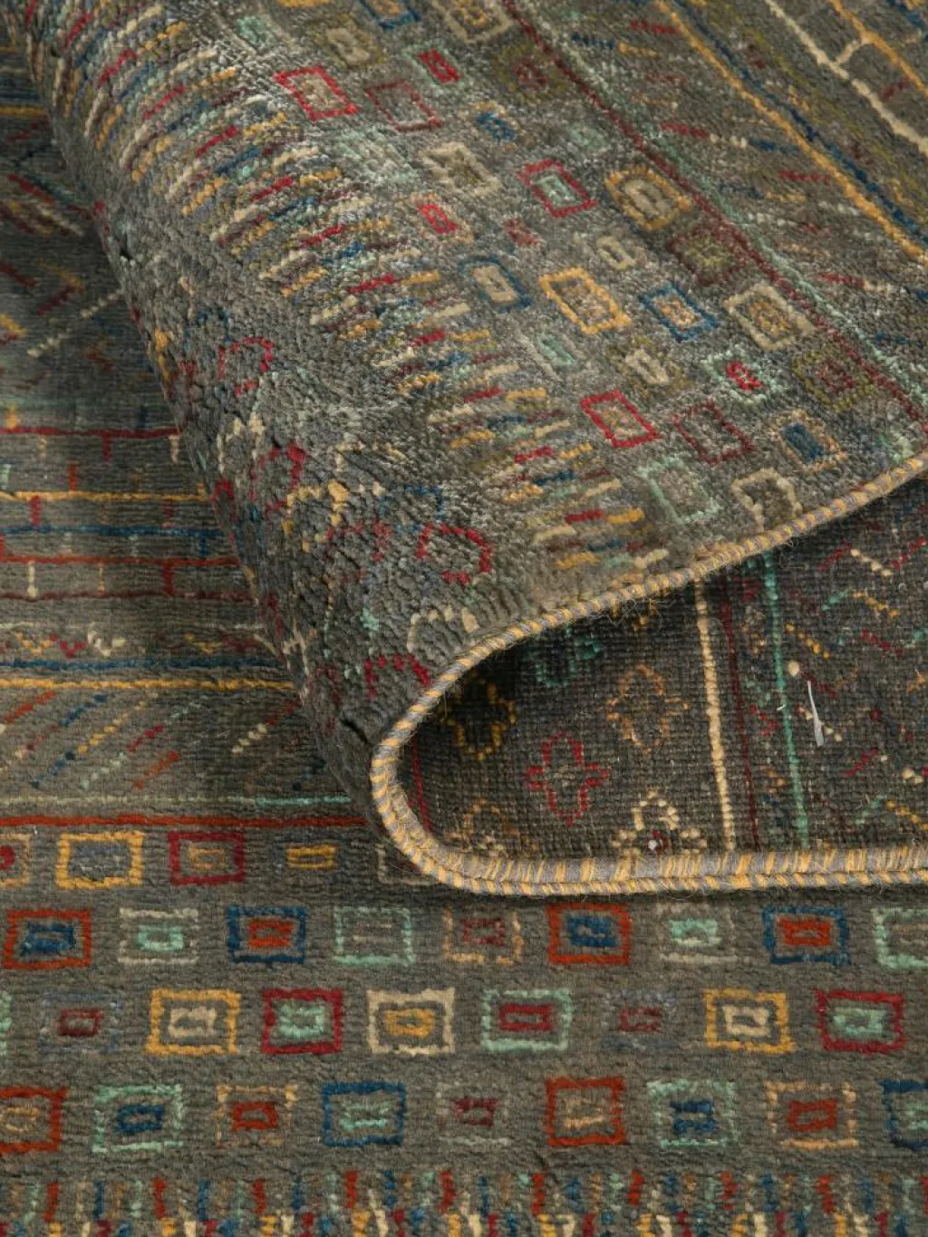 ist eine ungewöhnliche moderne Variation des traditionellen persichen Gabbehs. Er ist kürzer im Flor und feiner geknüpft. Es gibt zahllose Neukreationen in individuellen und einzigartigen Farben und Mustern.| Gesamthöhe: | ca. 7 mm |