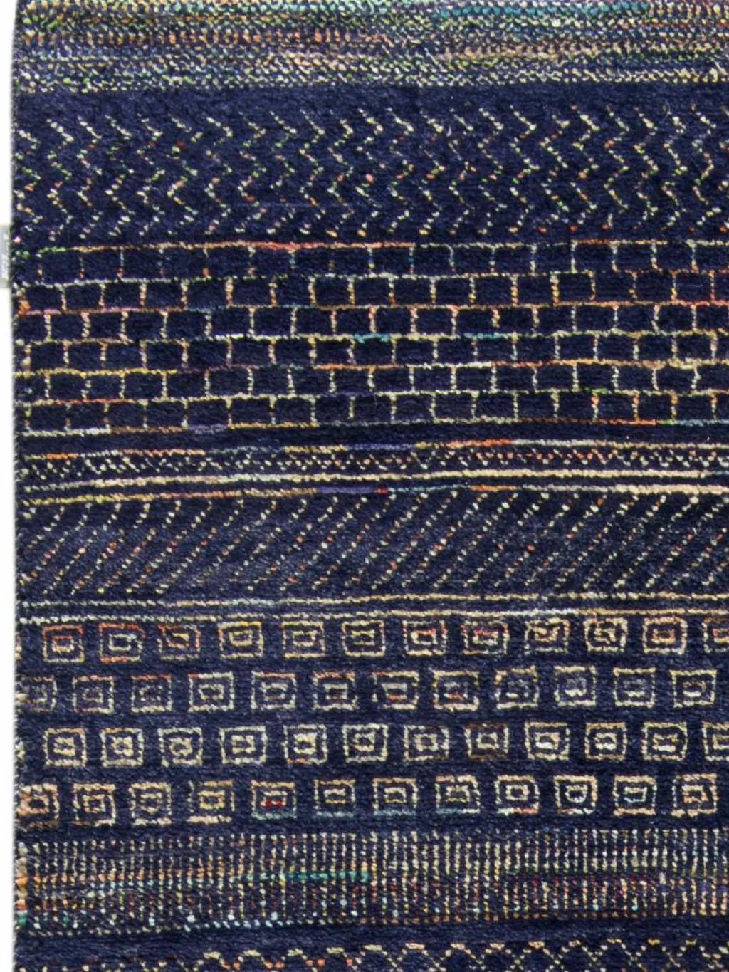 ist eine ungewöhnliche moderne Variation des traditionellen persichen Gabbehs. Er ist kürzer im Flor und feiner geknüpft. Es gibt zahllose Neukreationen in individuellen und einzigartigen Farben und Mustern. – Fein geknüpft inDouble-Knot