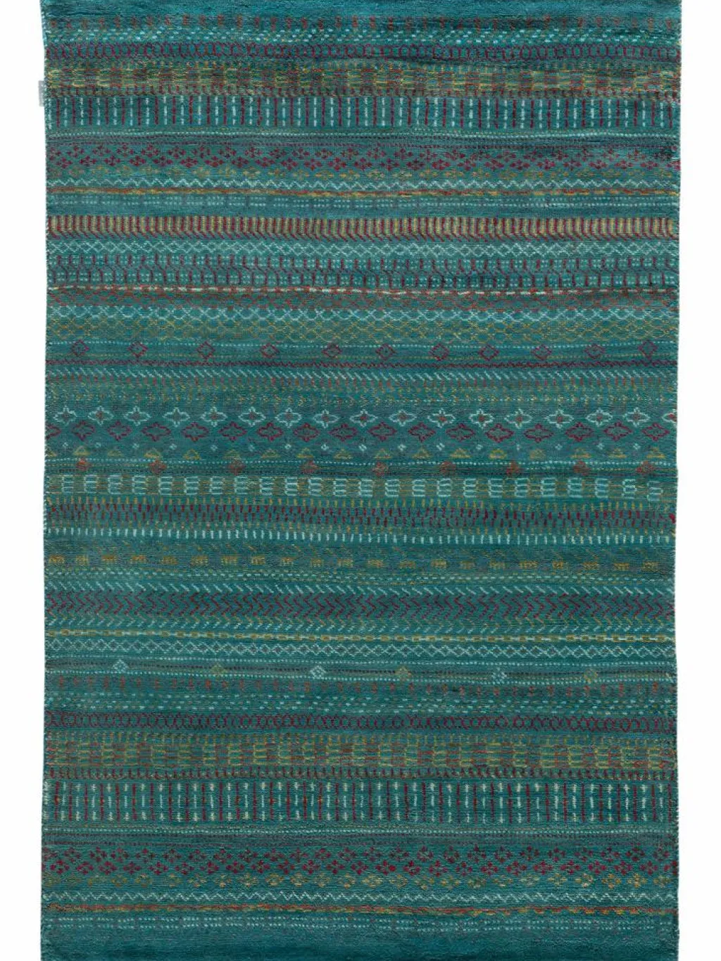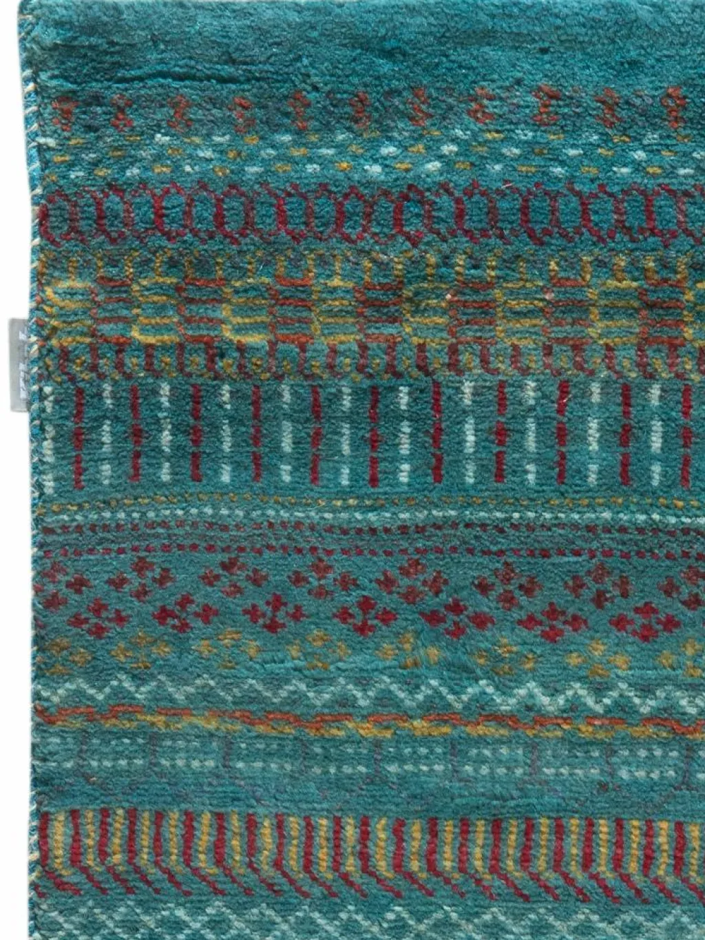 ist eine ungewöhnliche moderne Variation des traditionellen persichen Gabbehs. Er ist kürzer im Flor und feiner geknüpft. Es gibt zahllose Neukreationen in individuellen und einzigartigen Farben und Mustern.| Gesamthöhe: | ca. 10 mm |