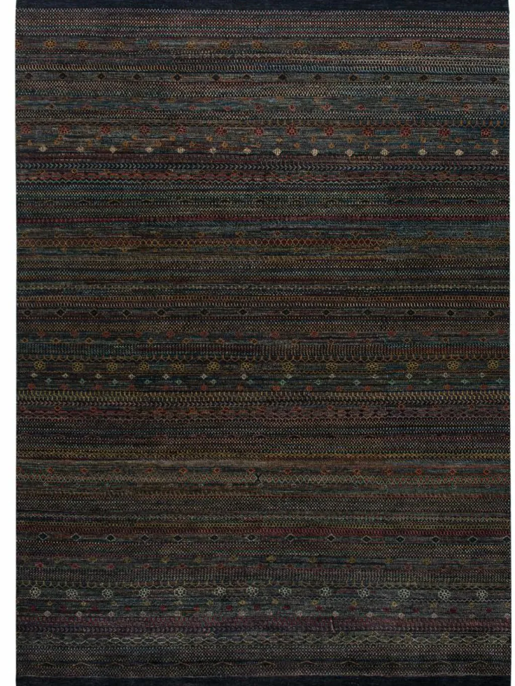ist eine ungewöhnliche moderne Variation des traditionellen persichen Gabbehs. Er ist kürzer im Flor und feiner geknüpft. Es gibt zahllose Neukreationen in individuellen und einzigartigen Farben und Mustern.| Größe: | ca. 252 x 363 cm |