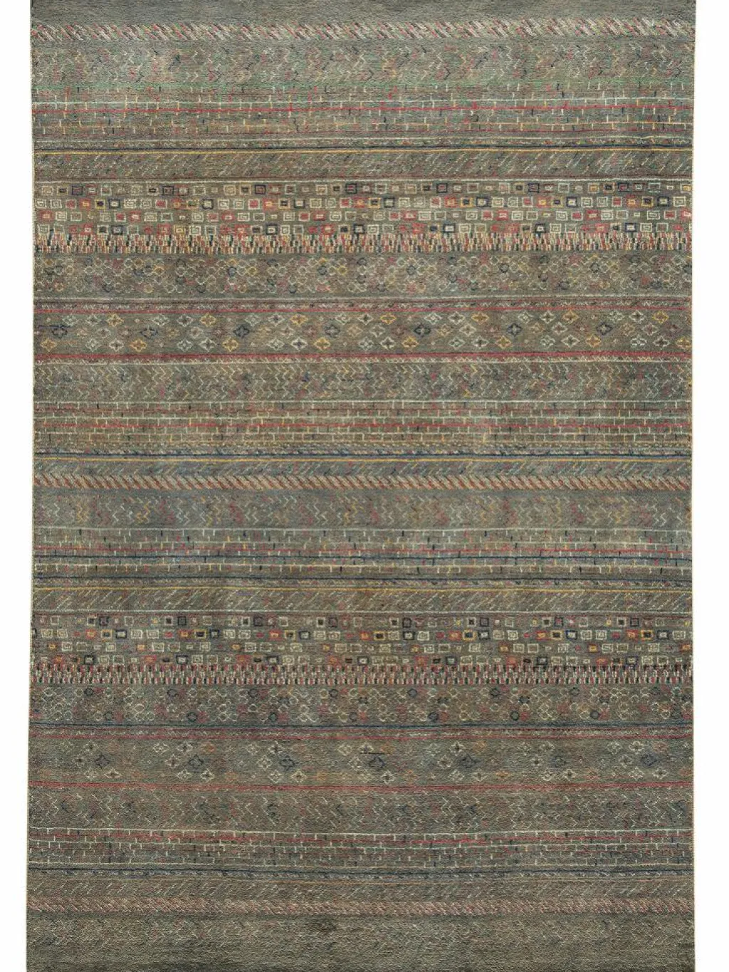 ist eine ungewöhnliche moderne Variation des traditionellen persichen Gabbehs. Er ist kürzer im Flor und feiner geknüpft. Es gibt zahllose Neukreationen in individuellen und einzigartigen Farben und Mustern.| Gesamthöhe: | ca. 7 mm |