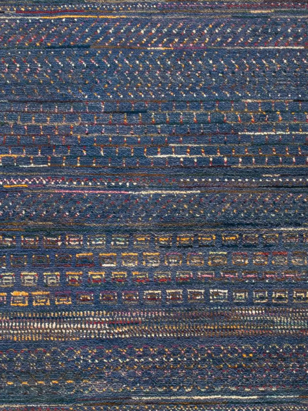 ist eine ungewöhnliche moderne Variation des traditionellen persichen Gabbehs. Er ist kürzer im Flor und feiner geknüpft. Es gibt zahllose Neukreationen in individuellen und einzigartigen Farben und Mustern.| Gesamthöhe: | ca. 10 mm |