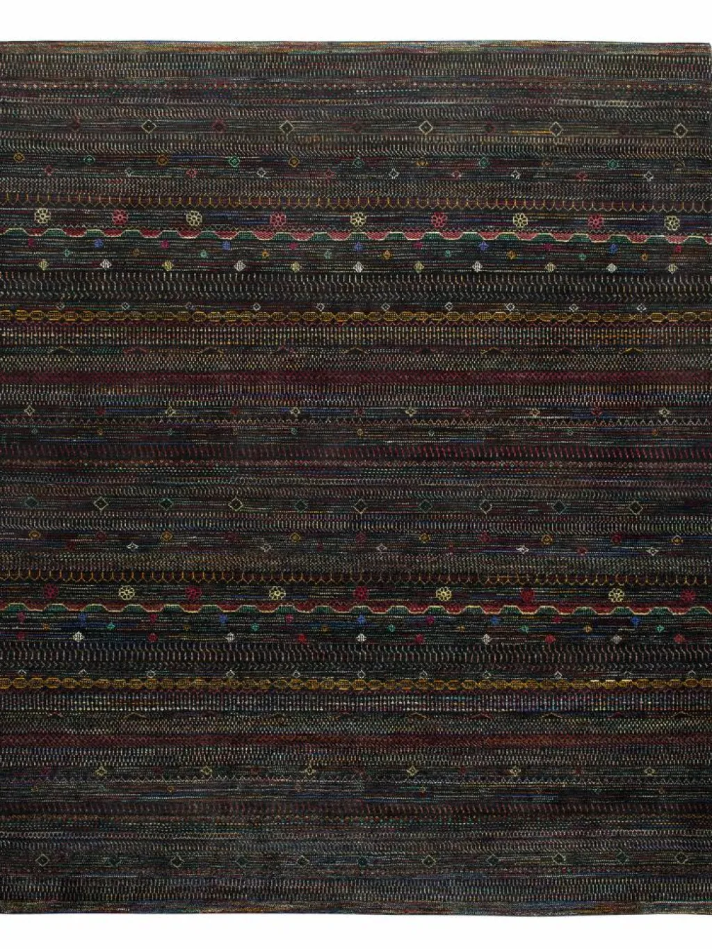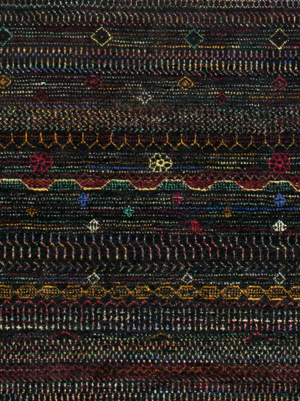 ist eine ungewöhnliche moderne Variation des traditionellen persichen Gabbehs. Er ist kürzer im Flor und feiner geknüpft. Es gibt zahllose Neukreationen in individuellen und einzigartigen Farben und Mustern. – Fein geknüpft inDouble-Knot