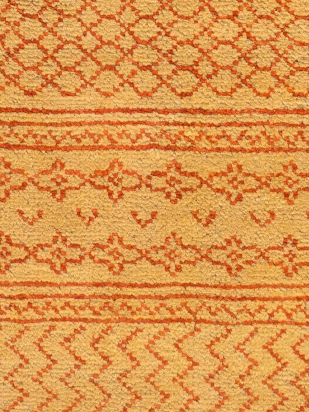 ist eine ungewöhnliche moderne Variation des traditionellen persichen Gabbehs. Er ist kürzer im Flor und feiner geknüpft. Es gibt zahllose Neukreationen in individuellen und einzigartigen Farben und Mustern.| Gesamthöhe: | ca. 10 mm |