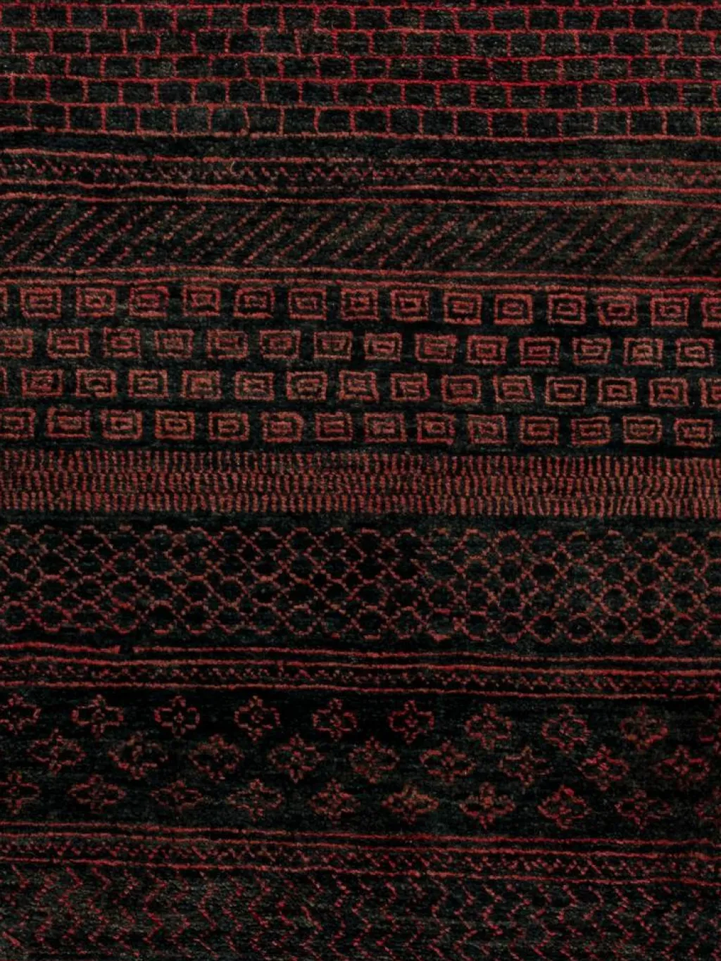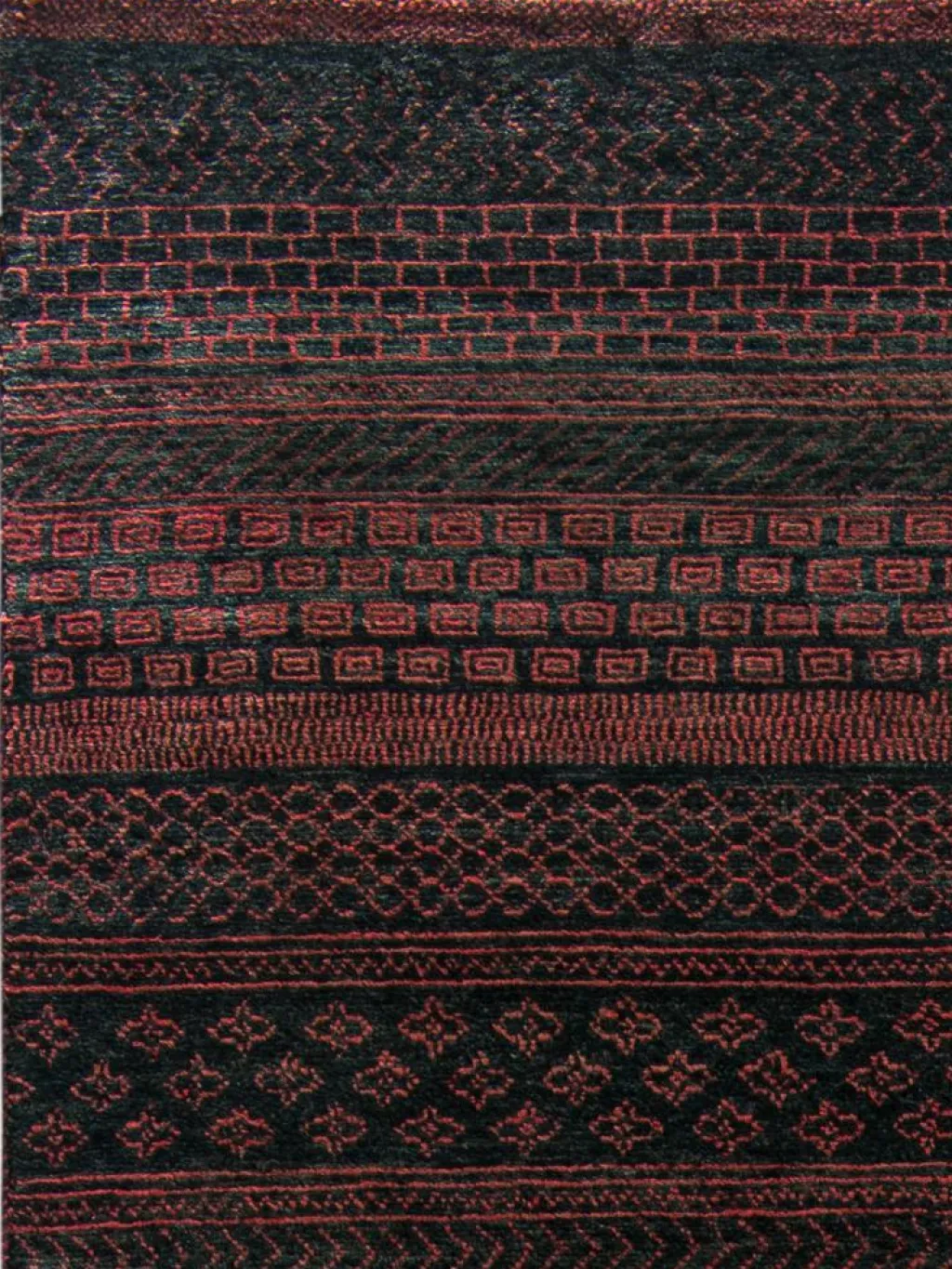 ist eine ungewöhnliche moderne Variation des traditionellen persichen Gabbehs. Er ist kürzer im Flor und feiner geknüpft. Es gibt zahllose Neukreationen in individuellen und einzigartigen Farben und Mustern.| Gesamthöhe: | ca. 10 mm |