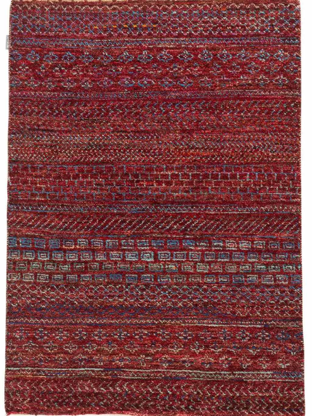 ist eine ungewöhnliche moderne Variation des traditionellen persichen Gabbehs. Er ist kürzer im Flor und feiner geknüpft. Es gibt zahllose Neukreationen in individuellen und einzigartigen Farben und Mustern.| Gesamthöhe: | ca. 6 mm |