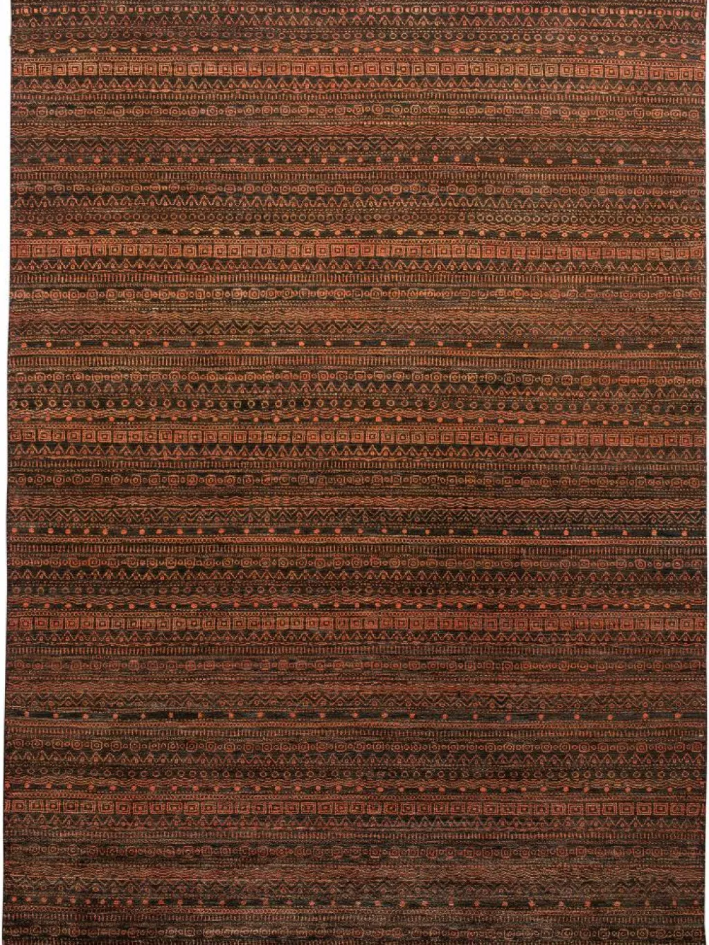 ist eine ungewöhnliche moderne Variation des traditionellen persichen Gabbehs. Er ist kürzer im Flor und feiner geknüpft. Es gibt zahllose Neukreationen in individuellen und einzigartigen Farben und Mustern.| Gesamthöhe: | ca. 10 mm |