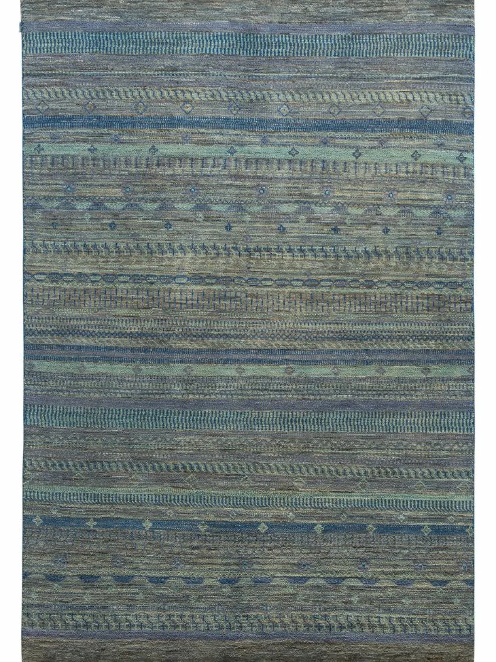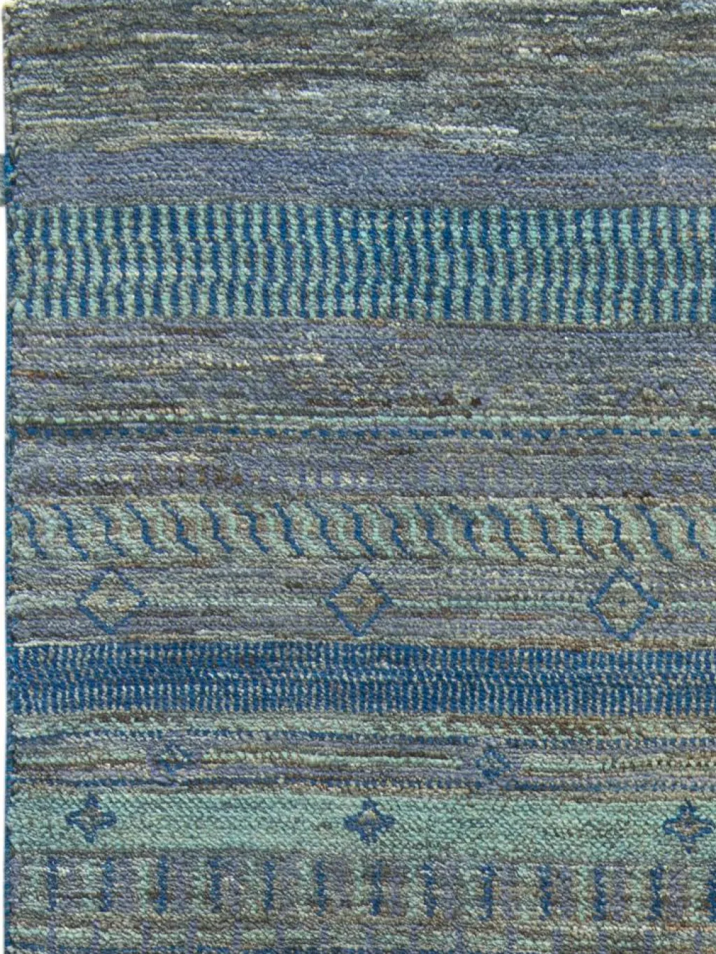 ist eine ungewöhnliche moderne Variation des traditionellen persichen Gabbehs. Er ist kürzer im Flor und feiner geknüpft. Es gibt zahllose Neukreationen in individuellen und einzigartigen Farben und Mustern.| Gesamthöhe: | ca. 7 mm |