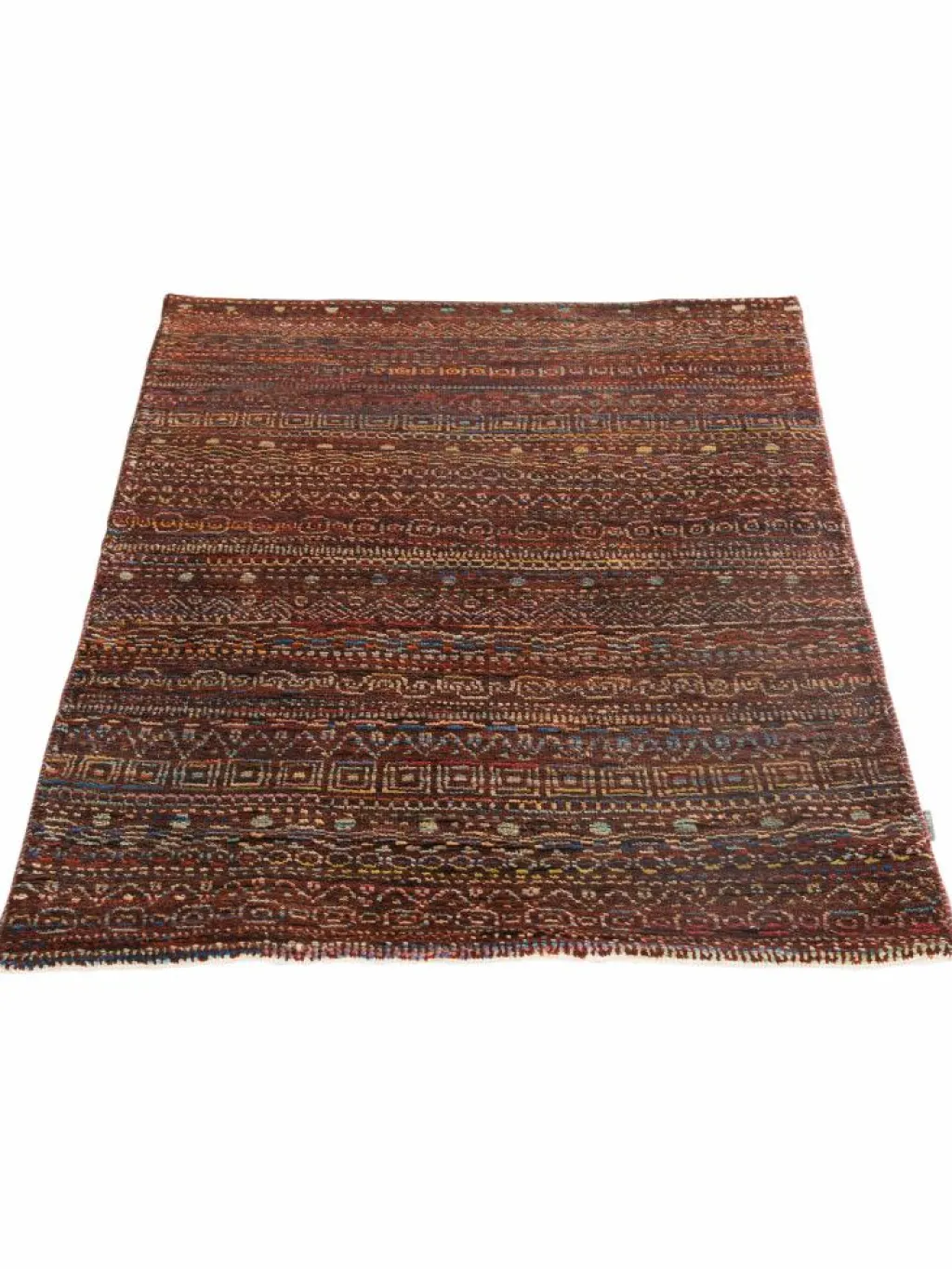 ist eine ungewöhnliche moderne Variation des traditionellen persichen Gabbehs. Er ist kürzer im Flor und feiner geknüpft. Es gibt zahllose Neukreationen in individuellen und einzigartigen Farben und Mustern.| Gesamthöhe: | ca. 10 mm |