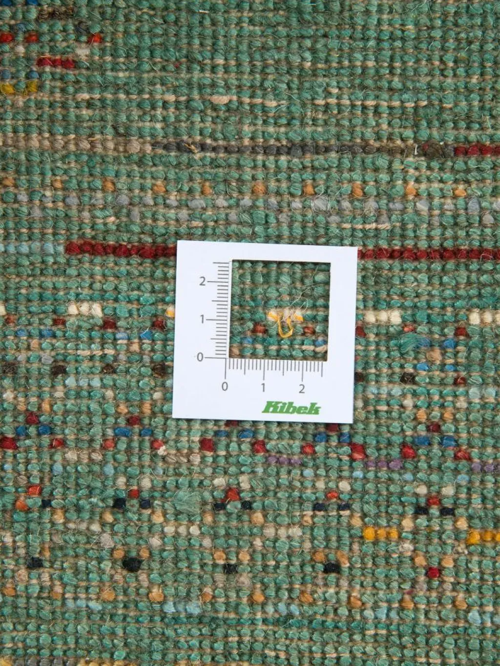 ist eine ungewöhnliche moderne Variation des traditionellen persichen Gabbehs. Er ist kürzer im Flor und feiner geknüpft. Es gibt zahllose Neukreationen in individuellen und einzigartigen Farben und Mustern.| Gesamthöhe: | ca. 8 mm |