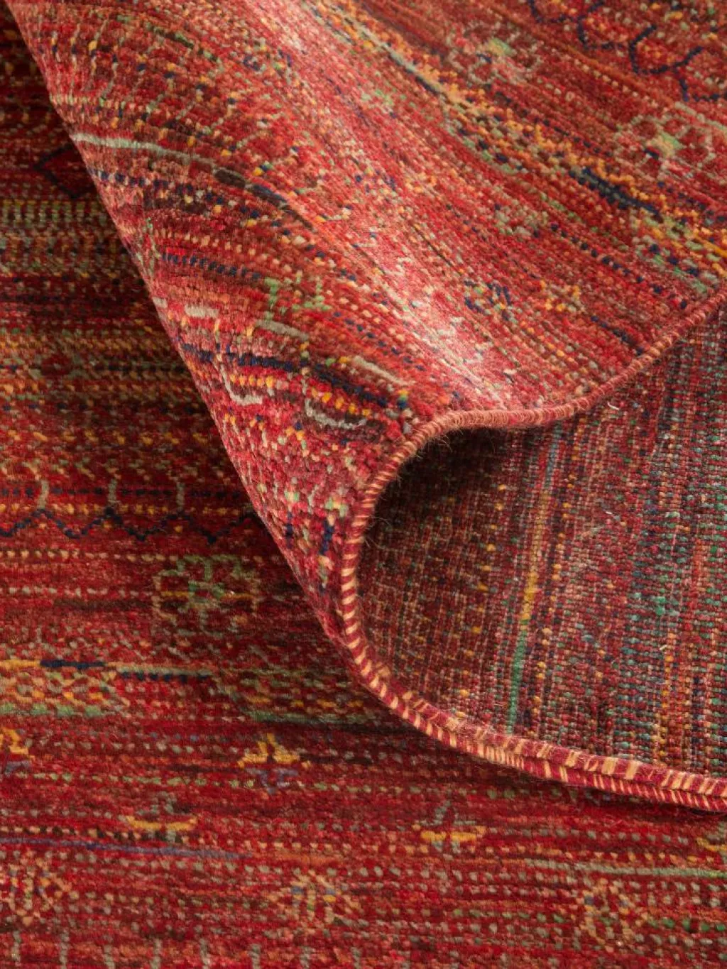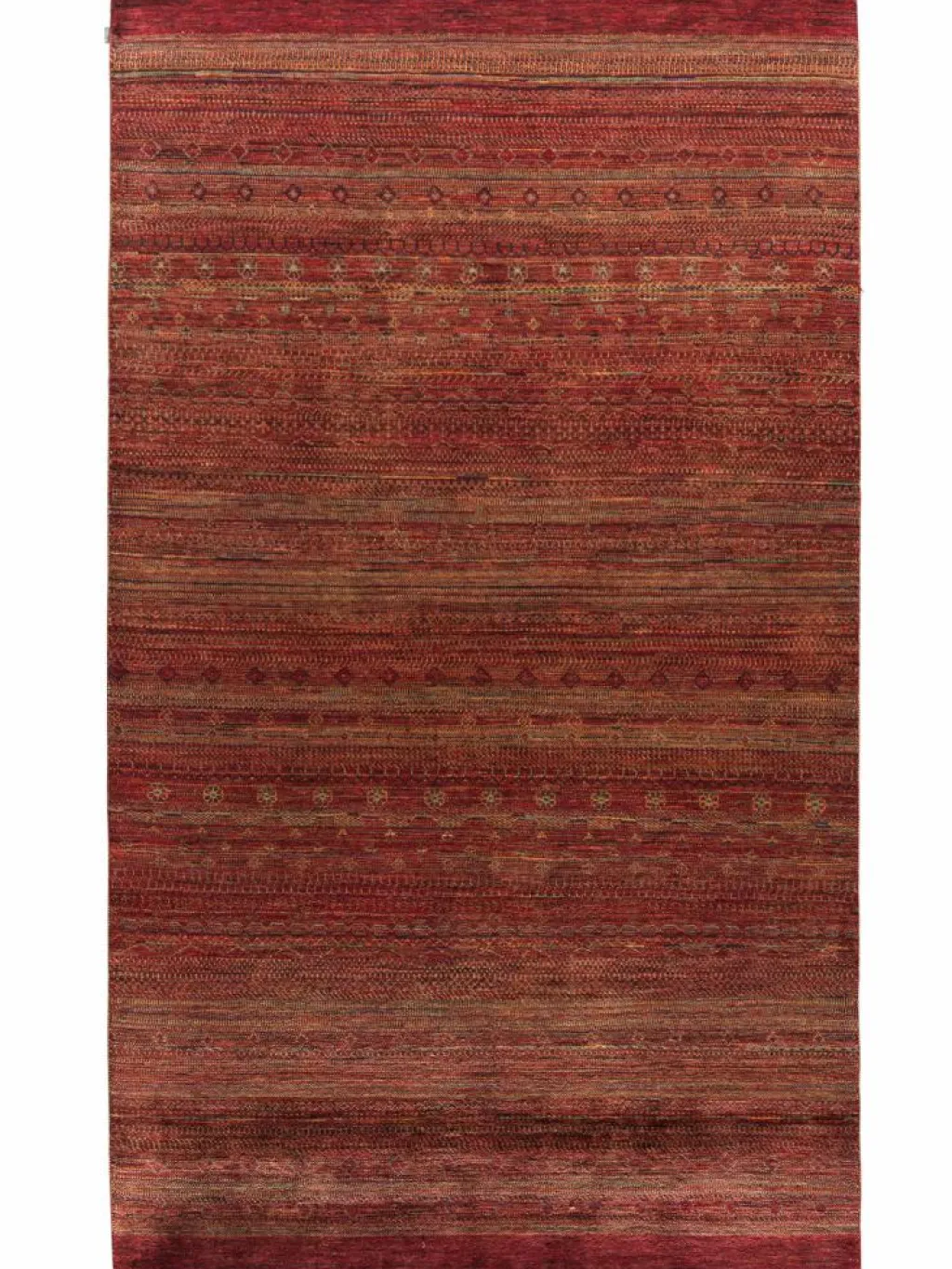 ist eine ungewöhnliche moderne Variation des traditionellen persichen Gabbehs. Er ist kürzer im Flor und feiner geknüpft. Es gibt zahllose Neukreationen in individuellen und einzigartigen Farben und Mustern.| Gesamthöhe: | ca. 10 mm |