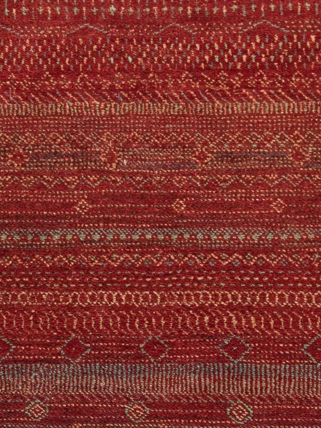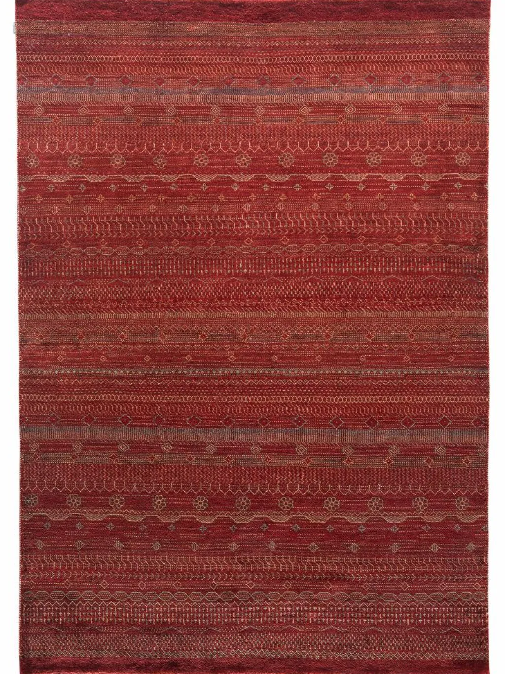 ist eine ungewöhnliche moderne Variation des traditionellen persichen Gabbehs. Er ist kürzer im Flor und feiner geknüpft. Es gibt zahllose Neukreationen in individuellen und einzigartigen Farben und Mustern.| Gesamthöhe: | ca. 8 mm |