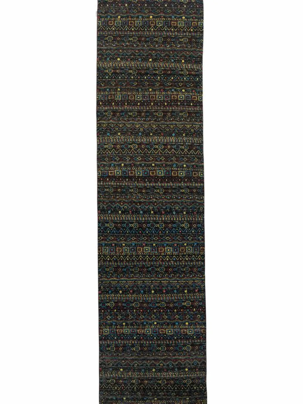 ist eine ungewöhnliche moderne Variation des traditionellen persichen Gabbehs. Er ist kürzer im Flor und feiner geknüpft. Es gibt zahllose Neukreationen in individuellen und einzigartigen Farben und Mustern.| Gesamthöhe: | ca. 10 mm |