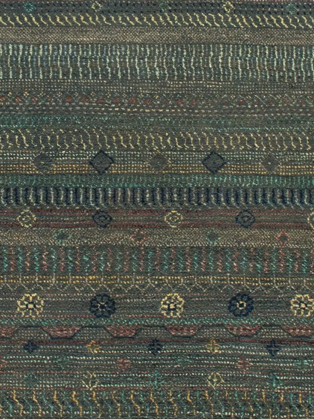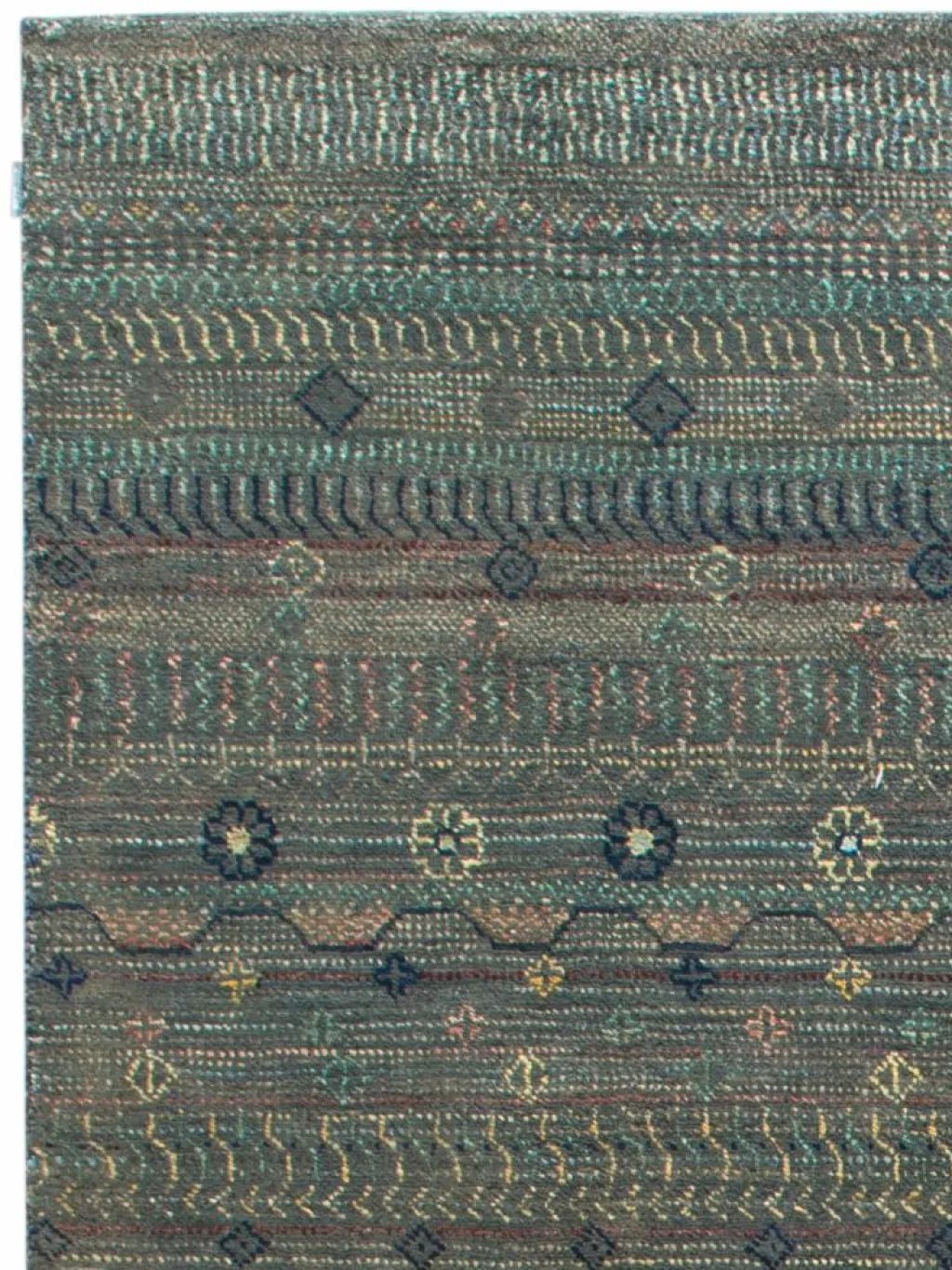 ist eine ungewöhnliche moderne Variation des traditionellen persichen Gabbehs. Er ist kürzer im Flor und feiner geknüpft. Es gibt zahllose Neukreationen in individuellen und einzigartigen Farben und Mustern.| Gesamthöhe: | ca. 7 mm |