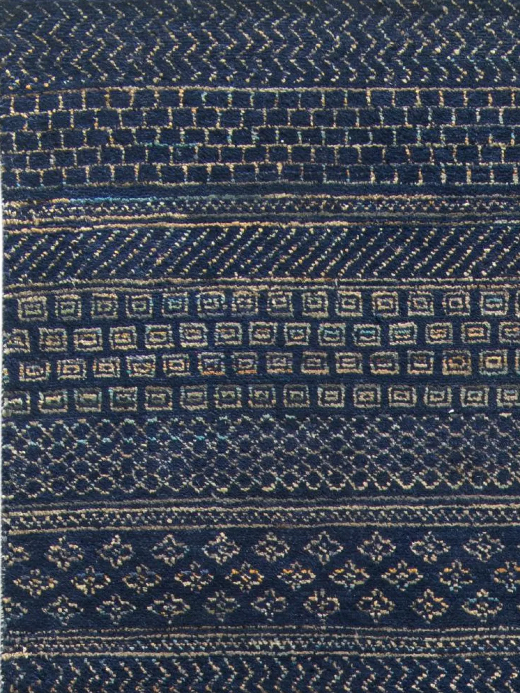 ist eine ungewöhnliche moderne Variation des traditionellen persichen Gabbehs. Er ist kürzer im Flor und feiner geknüpft. Es gibt zahllose Neukreationen in individuellen und einzigartigen Farben und Mustern.| Gesamthöhe: | ca. 7 mm |