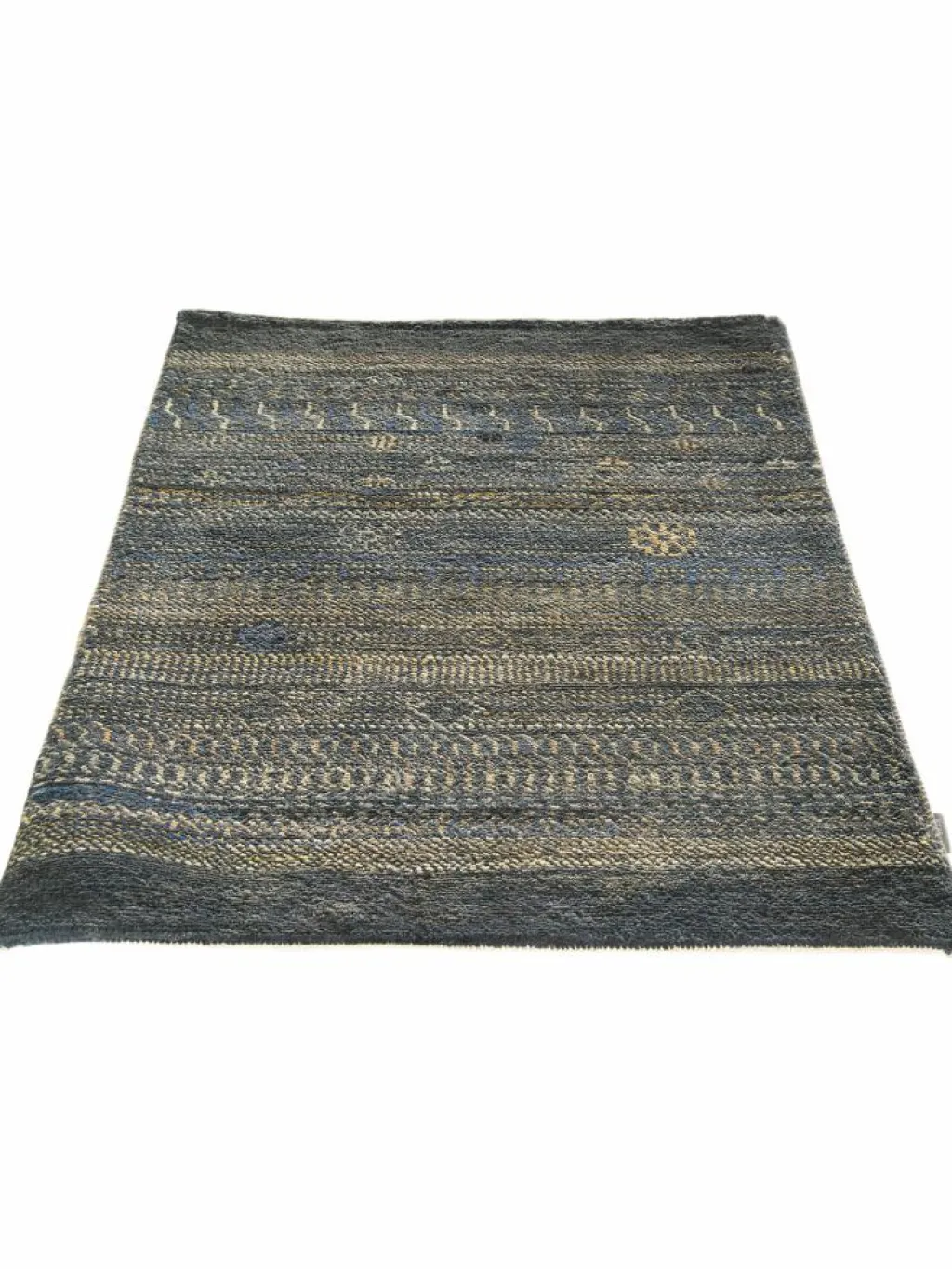 ist eine ungewöhnliche moderne Variation des traditionellen persichen Gabbehs. Er ist kürzer im Flor und feiner geknüpft. Es gibt zahllose Neukreationen in individuellen und einzigartigen Farben und Mustern.| Gesamthöhe: | ca. 7 mm |