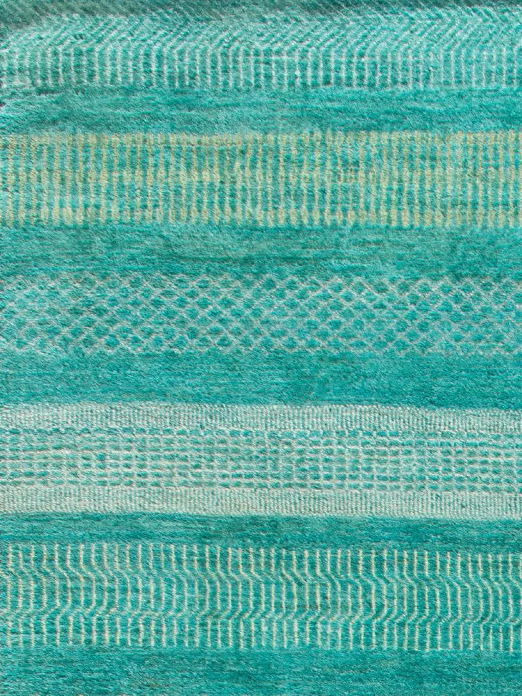 ist eine ungewöhnliche moderne Variation des traditionellen persichen Gabbehs. Er ist kürzer im Flor und feiner geknüpft. Es gibt zahllose Neukreationen in individuellen und einzigartigen Farben und Mustern.| Gesamthöhe: | ca. 10 mm |