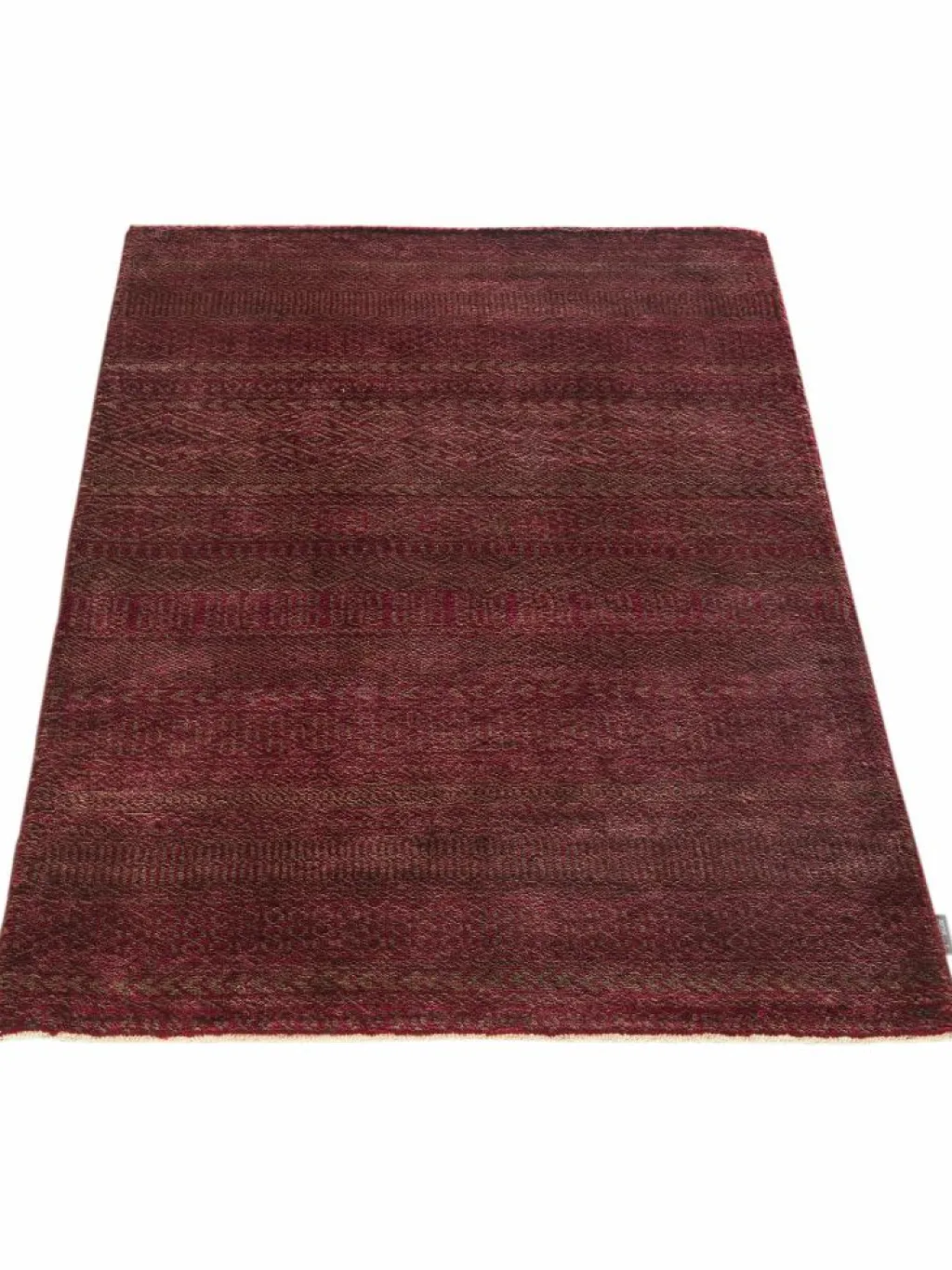 ist eine ungewöhnliche moderne Variation des traditionellen persichen Gabbehs. Er ist kürzer im Flor und feiner geknüpft. Es gibt zahllose Neukreationen in individuellen und einzigartigen Farben und Mustern.| Gesamthöhe: | ca. 7 mm |