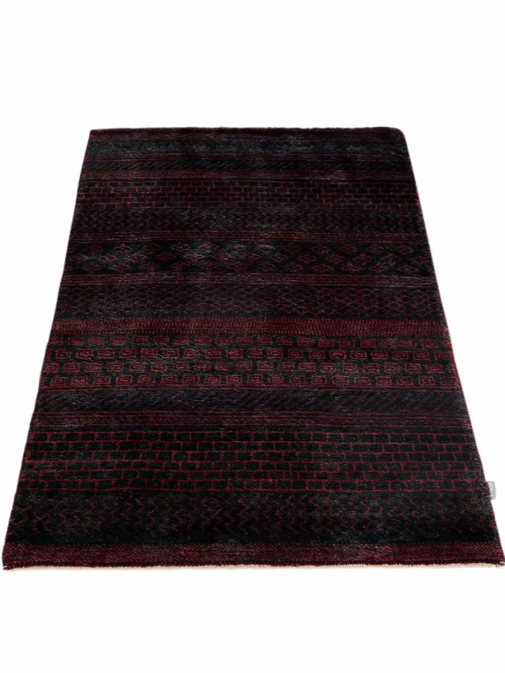 ist eine ungewöhnliche moderne Variation des traditionellen persichen Gabbehs. Er ist kürzer im Flor und feiner geknüpft. Es gibt zahllose Neukreationen in individuellen und einzigartigen Farben und Mustern. – Fein geknüpft inDouble-Knot