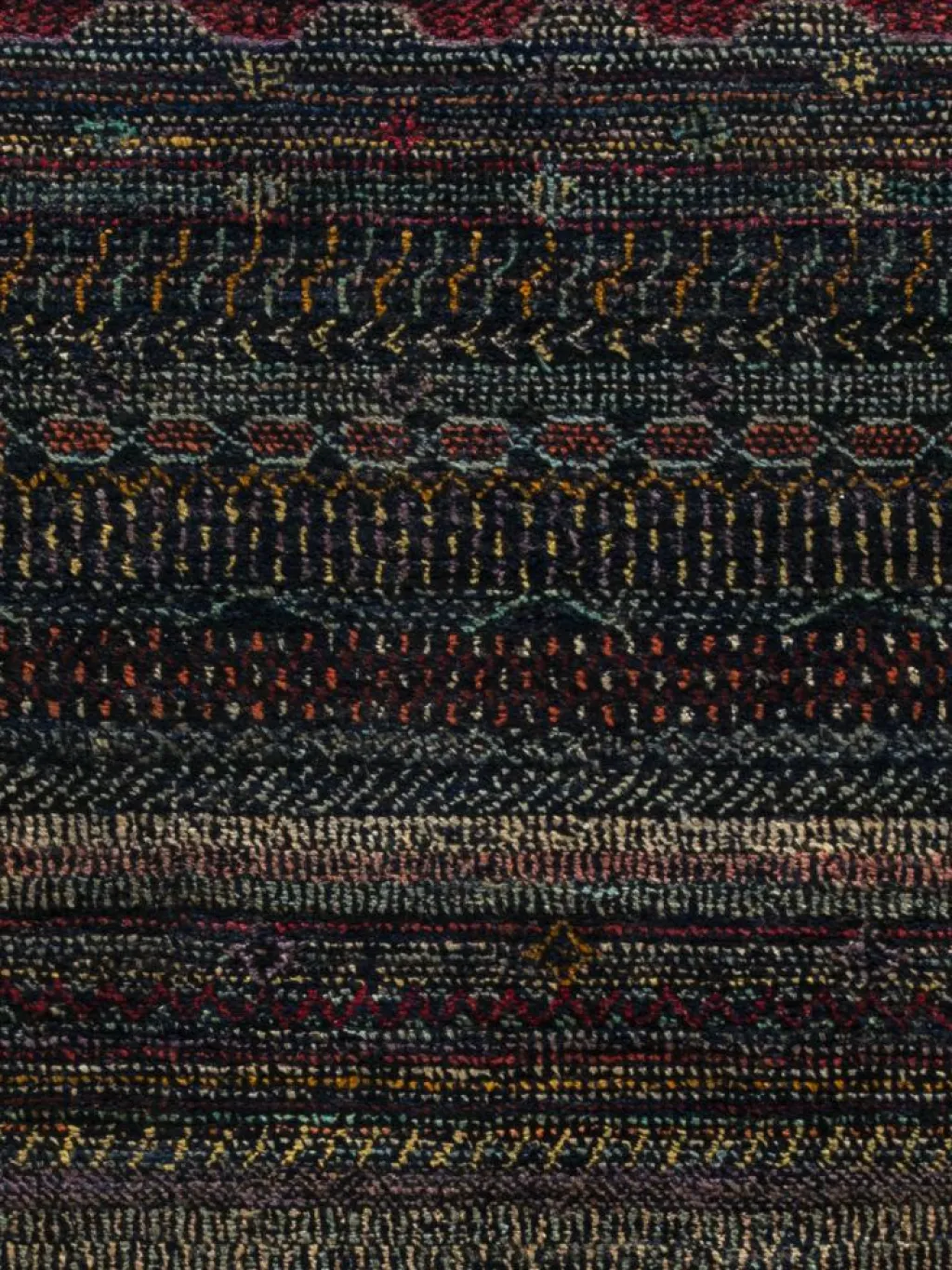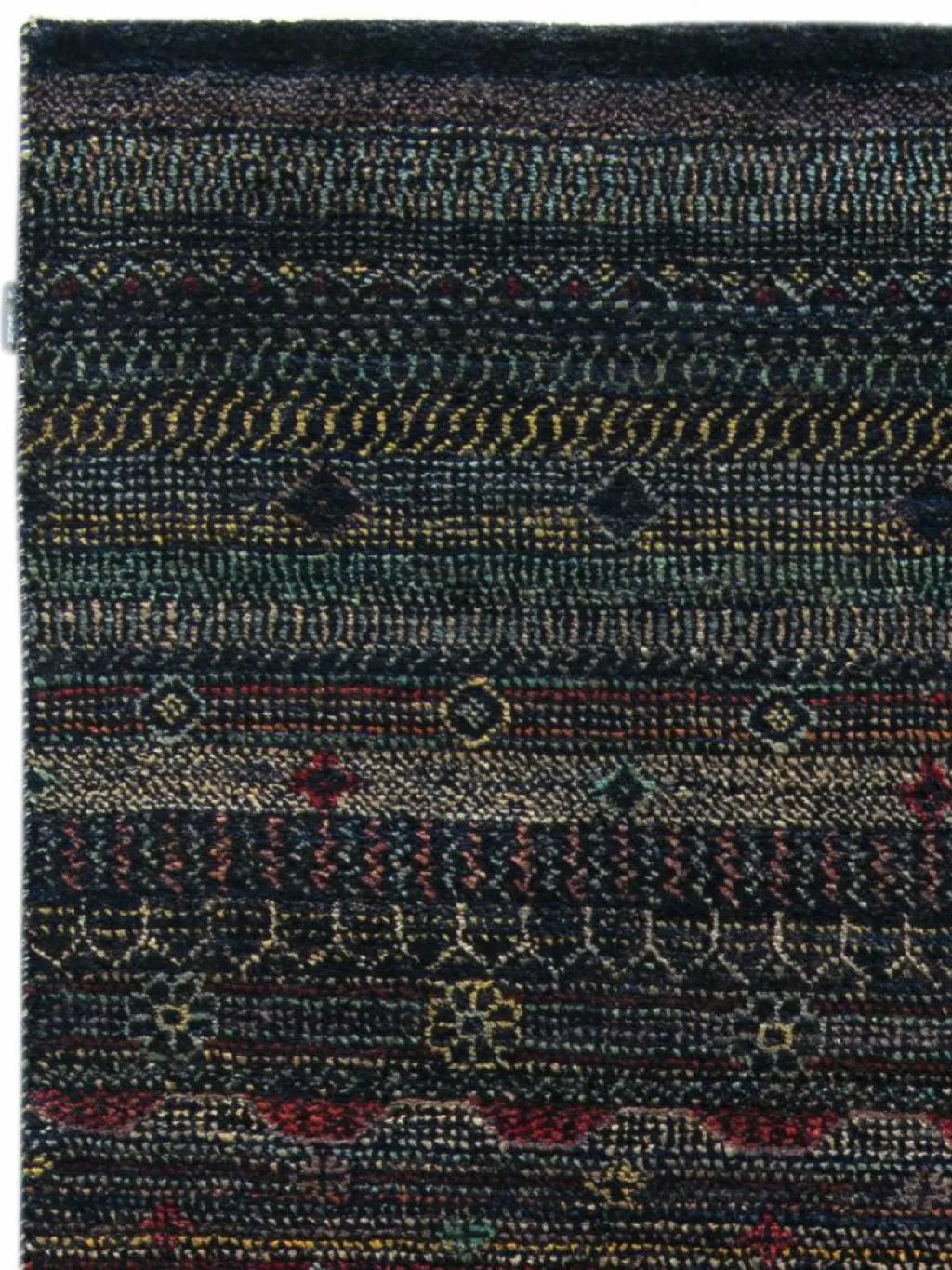 ist eine ungewöhnliche moderne Variation des traditionellen persichen Gabbehs. Er ist kürzer im Flor und feiner geknüpft. Es gibt zahllose Neukreationen in individuellen und einzigartigen Farben und Mustern.| Gesamthöhe: | ca. 10 mm |