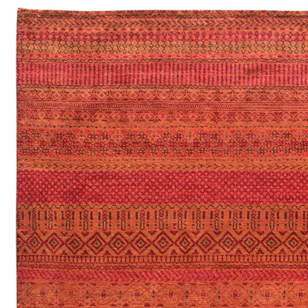 ist eine ungewöhnliche moderne Variation des traditionellen persichen Gabbehs. Er ist kürzer im Flor und feiner geknüpft. Es gibt zahllose Neukreationen in individuellen und einzigartigen Farben und Mustern.| Gesamthöhe: | ca. 12 mm |