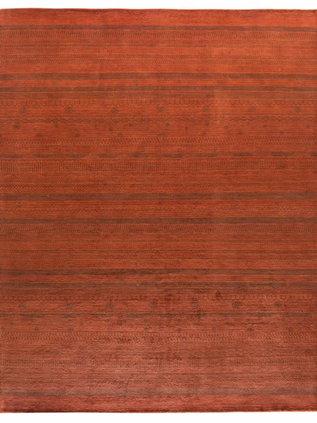 ist eine ungewöhnliche moderne Variation des traditionellen persichen Gabbehs. Er ist kürzer im Flor und feiner geknüpft. Es gibt zahllose Neukreationen in individuellen und einzigartigen Farben und Mustern.| Gesamthöhe: | ca. 10 mm |