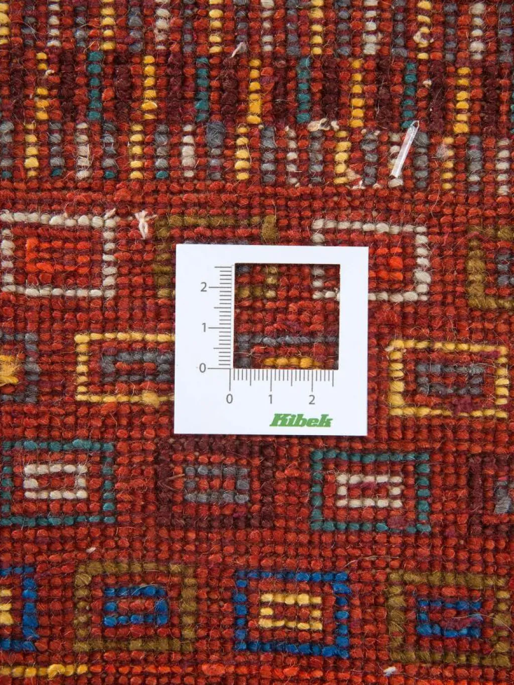 ist eine ungewöhnliche moderne Variation des traditionellen persichen Gabbehs. Er ist kürzer im Flor und feiner geknüpft. Es gibt zahllose Neukreationen in individuellen und einzigartigen Farben und Mustern.| Gesamthöhe: | ca. 10 mm |