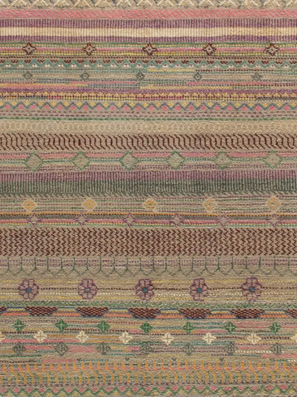 ist eine ungewöhnliche moderne Variation des traditionellen persichen Gabbehs. Er ist kürzer im Flor und feiner geknüpft. Es gibt zahllose Neukreationen in individuellen und einzigartigen Farben und Mustern.| Gesamthöhe: | ca. 10 mm |