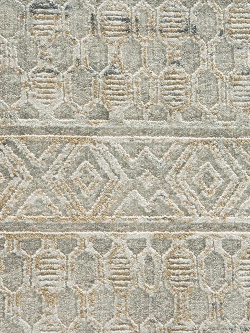. Der äußerst dichte Flor mit ca. 960.000 Florfäden pro m² wird maßgeblich zu der langen Lebensdauer an diesem einzigartigen Designer-Teppich beitragen. Flor aus 85 %Viskose