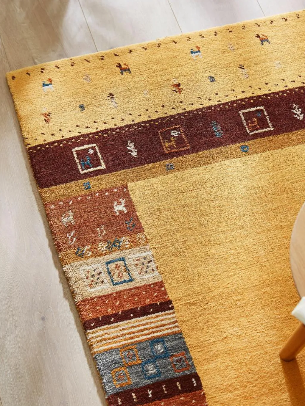 -Teppich ist handgearbeitet in schwerer, behaglicher Schurwollqualität.| Art: | Gabbeh |