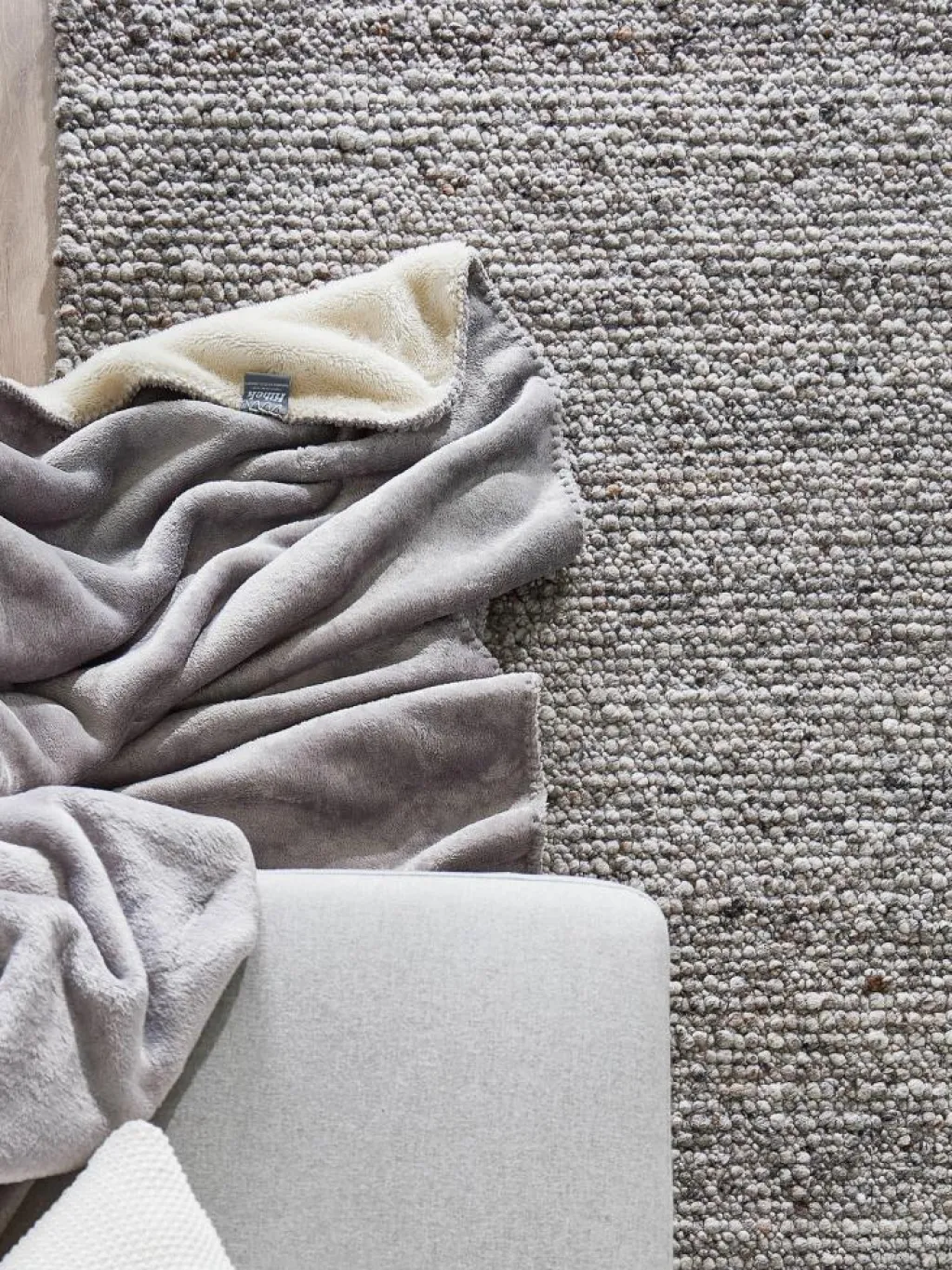 , denn es wärmt uns und unser Zuhause. Wie ein Beet voller Kieselsteine strahlt der stark strukturierte Flor aus gewalkterSchurwolle
