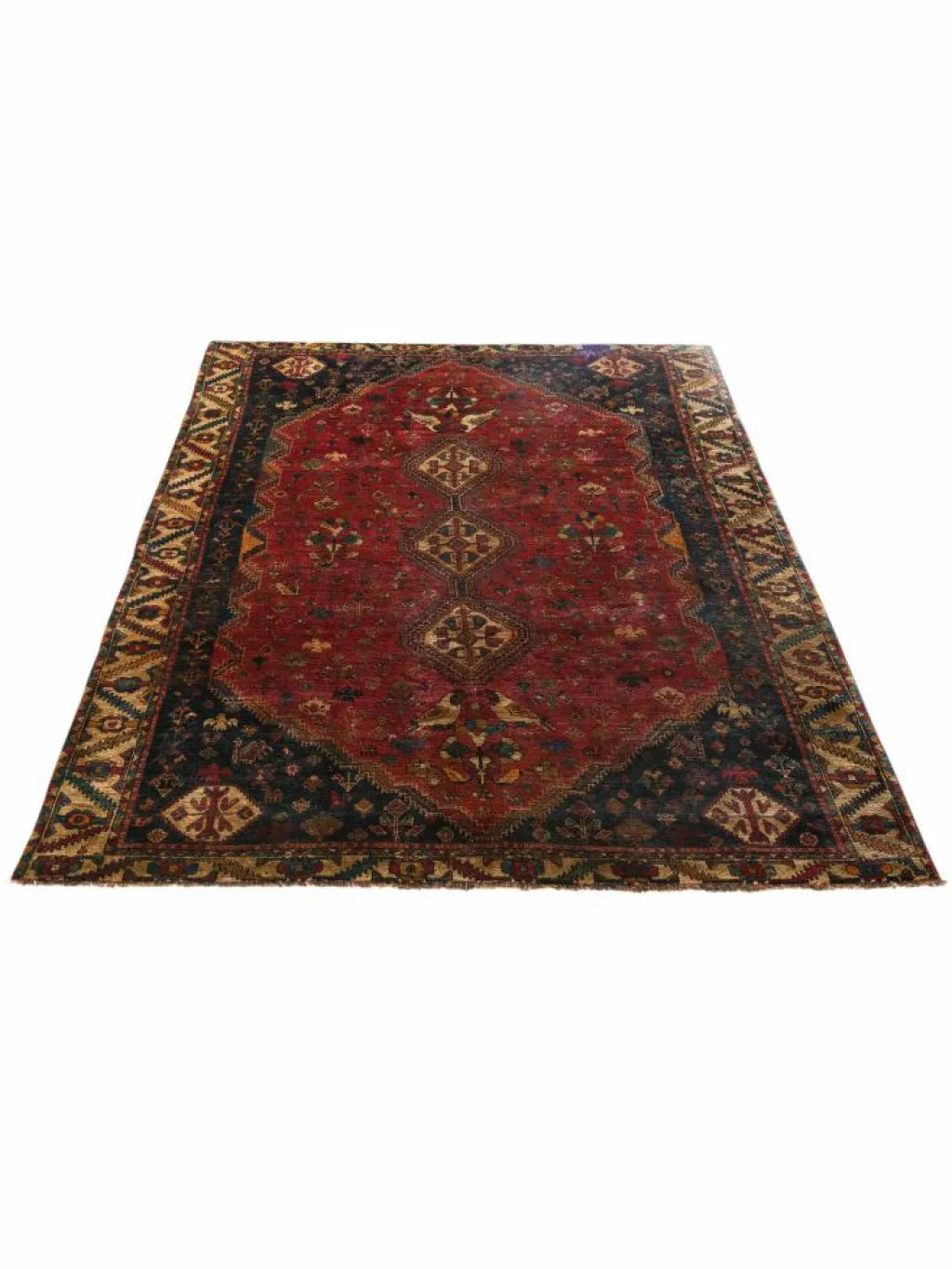-Teppiche sind die Könige unter den Nomadenteppichen. Knüpfvorlagen gibt es bei den Ghashgai nicht. Die Knüpferinnen haben ein sehr gutes Gedächtnis. Sie brauchen ein interessantes Motiv nur einmal zu sehen oder erzählt zu bekommen. Alle Teppiche werden aus dem Gedächtnis geknüpft und sind daher nie gleich. Die Ornamente werden immer anders angeordnet oder die Farben unterscheiden sich. DasGrundgewebe