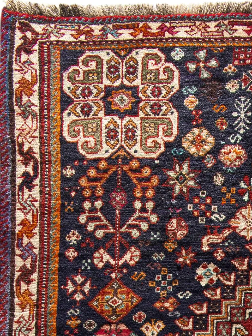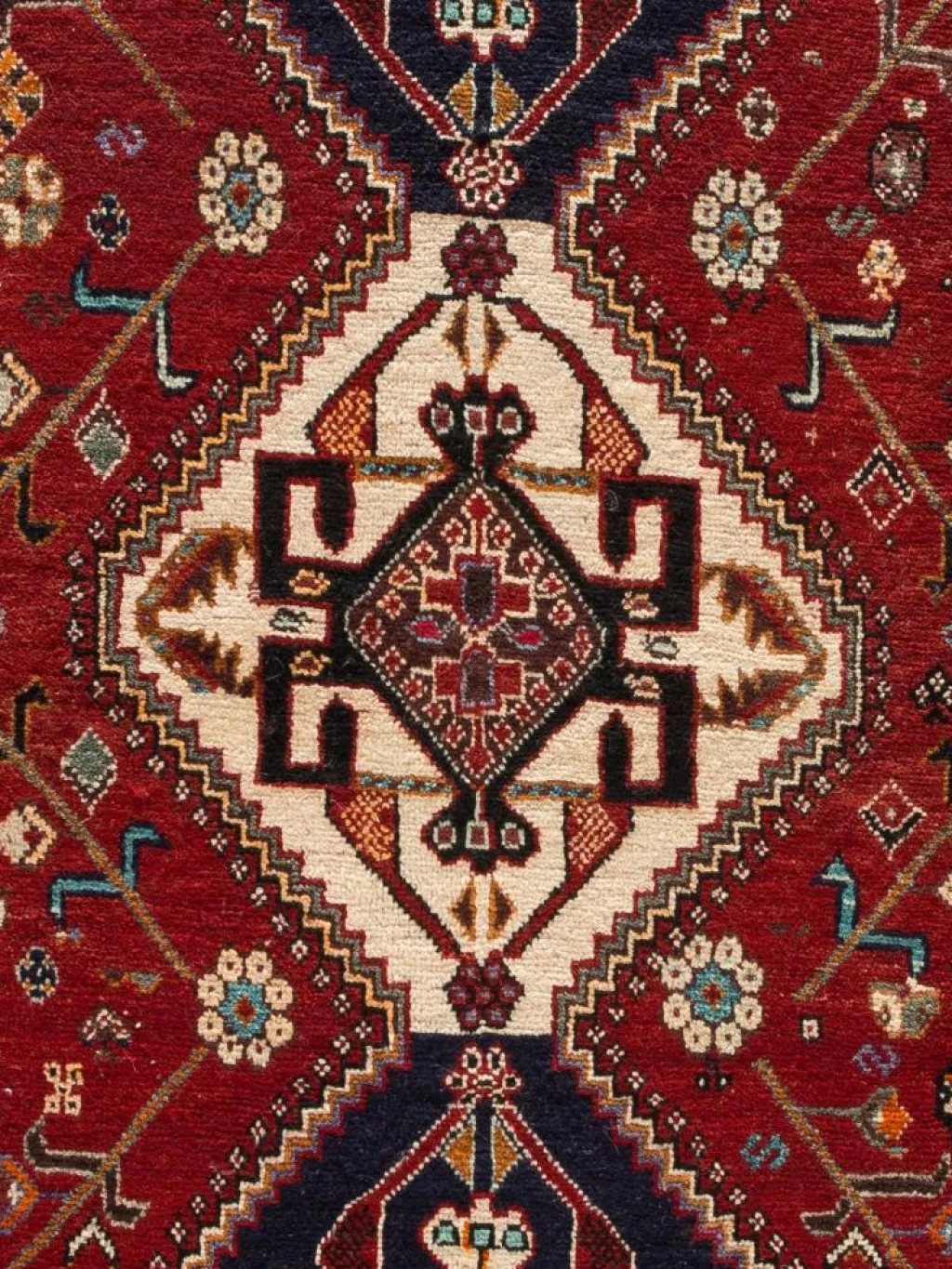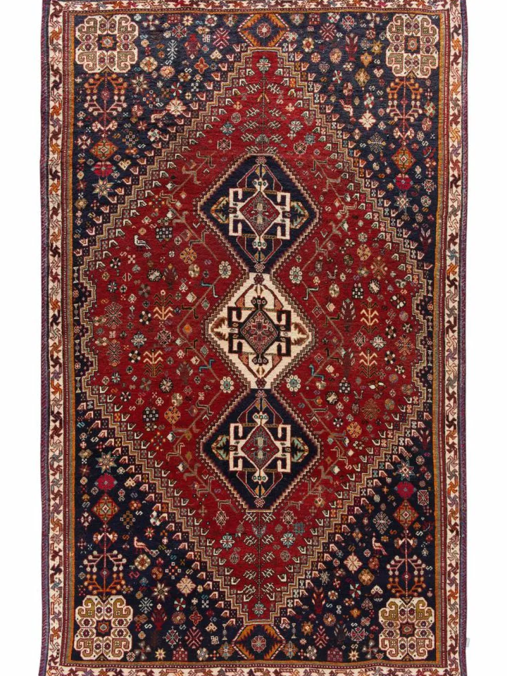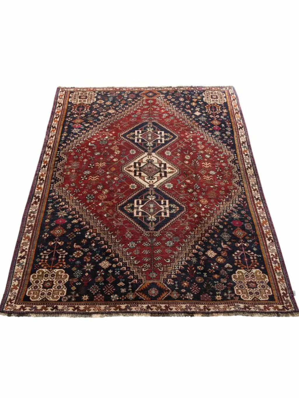 -Teppiche sind die Könige unter den Nomadenteppichen. Knüpfvorlagen gibt es bei den Ghashgai nicht. Die Knüpferinnen haben ein sehr gutes Gedächtnis. Sie brauchen ein interessantes Motiv nur einmal zu sehen oder erzählt zu bekommen. Alle Teppiche werden aus dem Gedächtnis geknüpft und sind daher nie gleich. Die Ornamente werden immer anders angeordnet oder die Farben unterscheiden sich. DasGrundgewebe