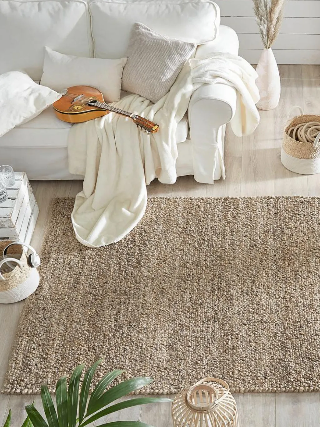| Material: | 85 % Schurwolle , 10 % Jute, 5 % Polyester |
