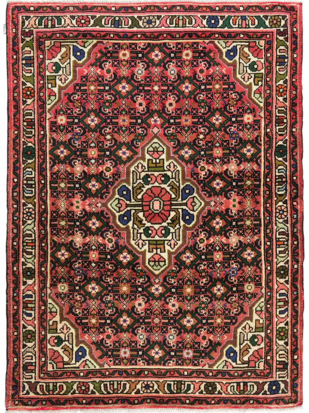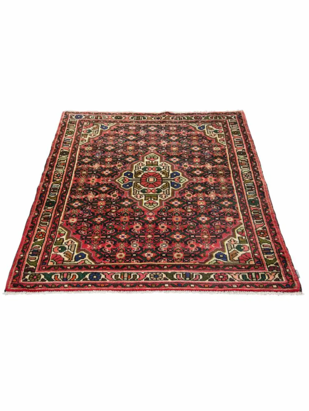 geknüpft oder von einem kleinen rautenförmigen Mittelmedaillon unterbrachen, das durch entsprechende Eckzwickel bildlich ausgeglichen wird.Die Gegend umHamadan