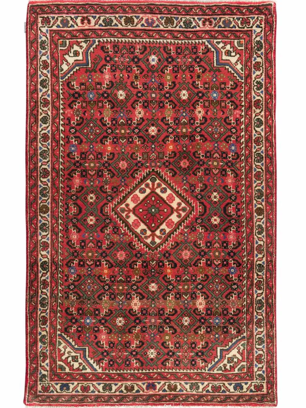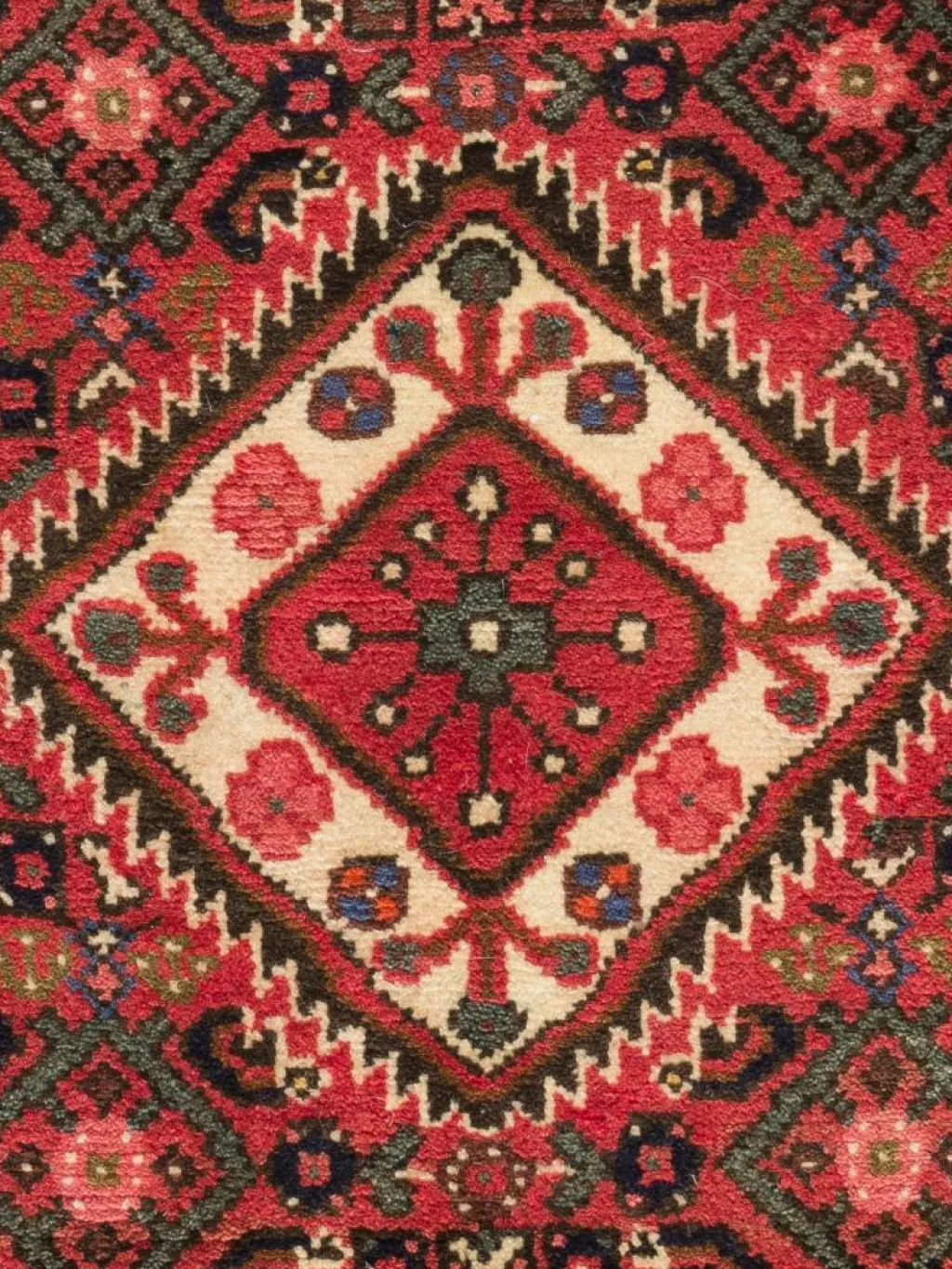 geknüpft oder von einem kleinen rautenförmigen Mittelmedaillon unterbrachen, das durch entsprechende Eckzwickel bildlich ausgeglichen wird.Die Gegend umHamadan
